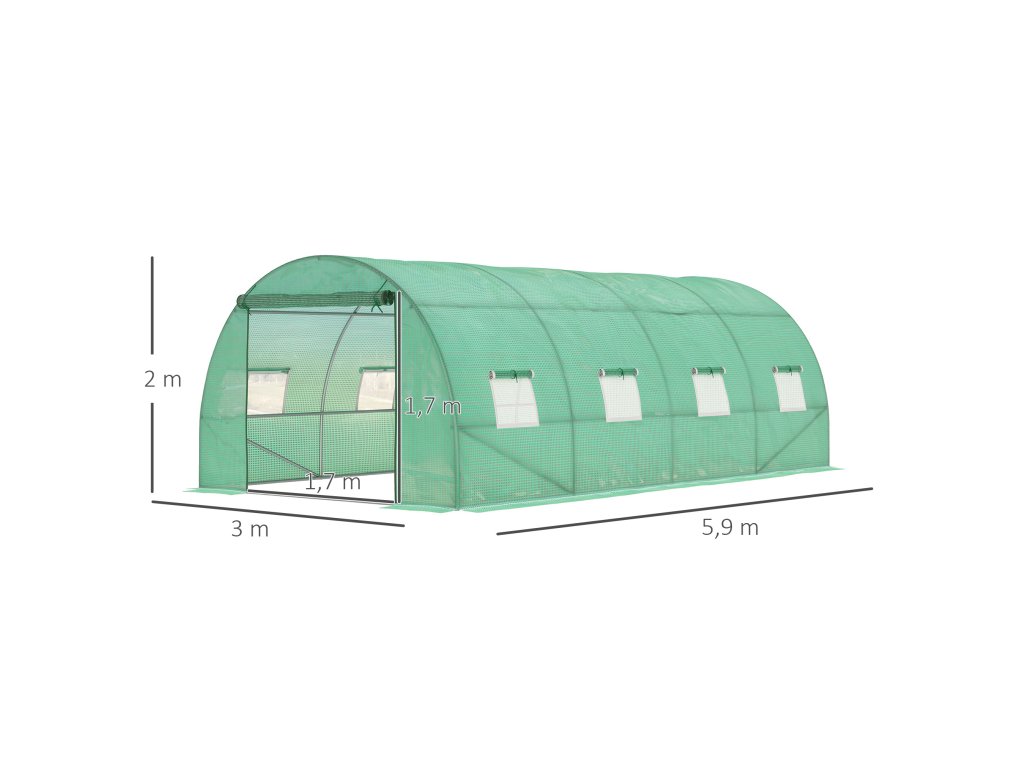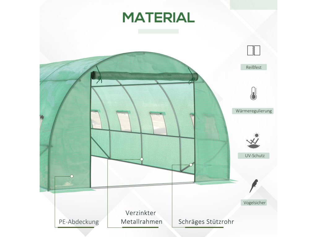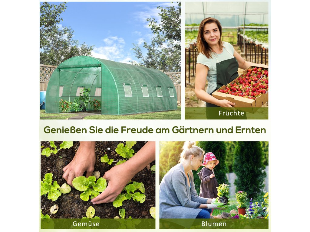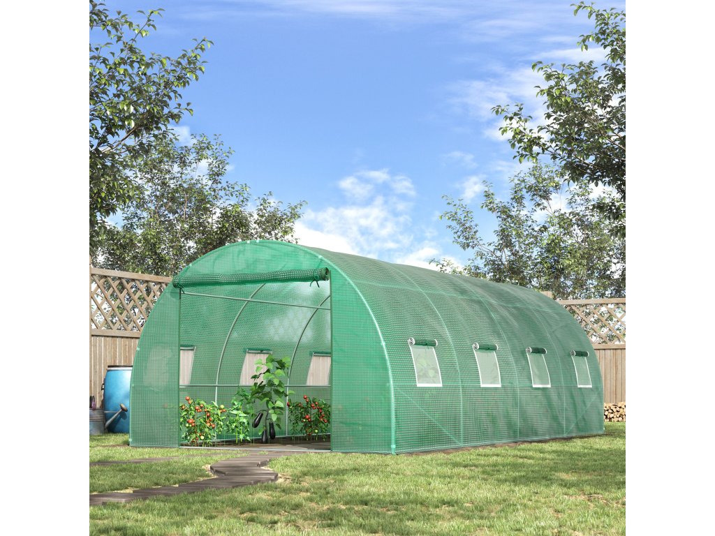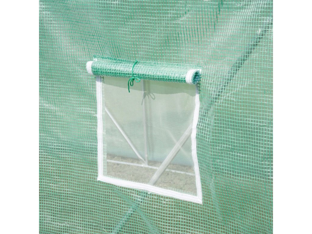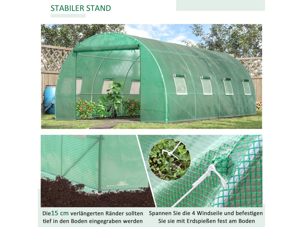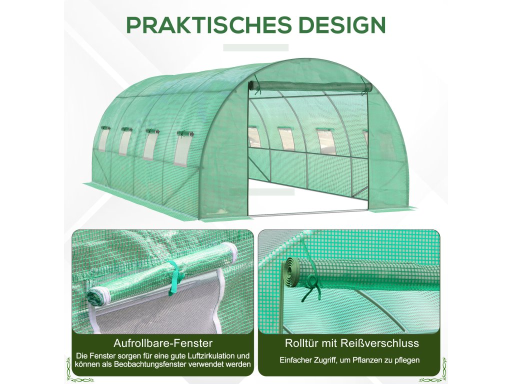 Fóliový skleník Outsunny o rozměrech cca 6 x 3 x 2 m s 8 okny, rolovacími dveřmi, rolovacími bočními stěnami, fóliovým tunelem odolným proti UV záření, zimním domkem na rajčata s ukotvením v zemi, zelený