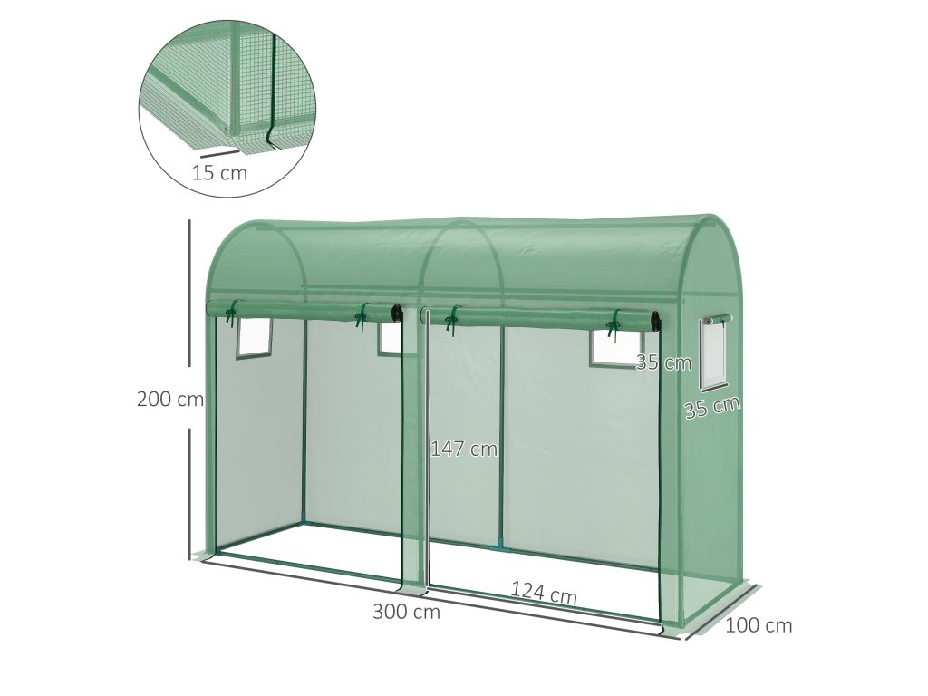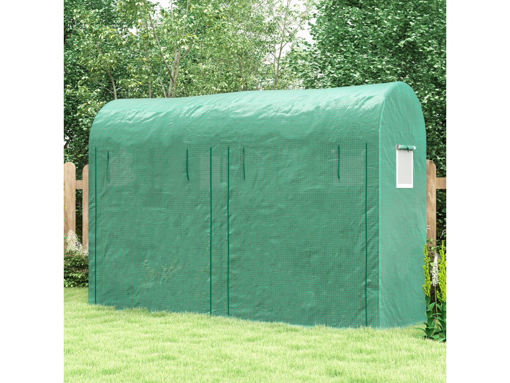 Fóliový skleník Outsunny Skleník na rajčata 300 x 100 x 200 cm se 4 okny a 2 dveřmi z PE plastu a oceli, ideální pro zahradu a zahradní centrum