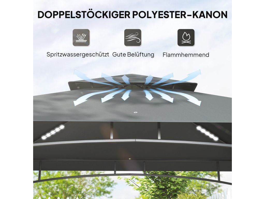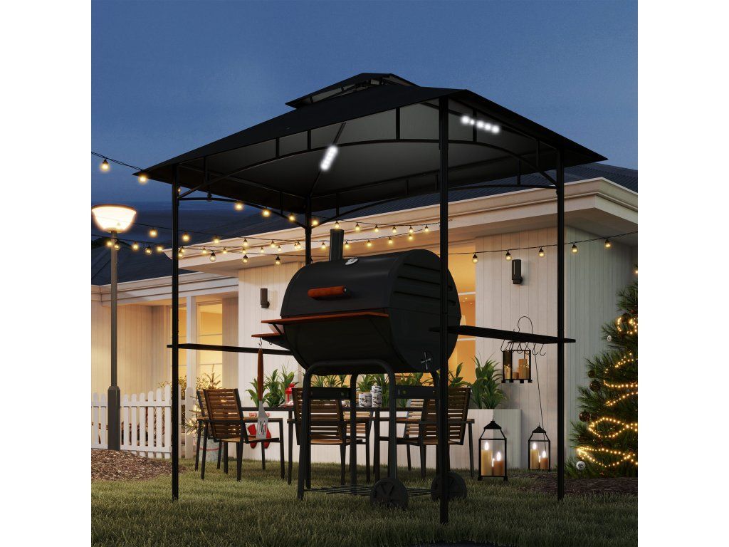 Gril pavilon s LED 240 x 150 x 258 cm vodoodpudivý nehořlavý zahradní pavilon s dvouvrstvou střechou