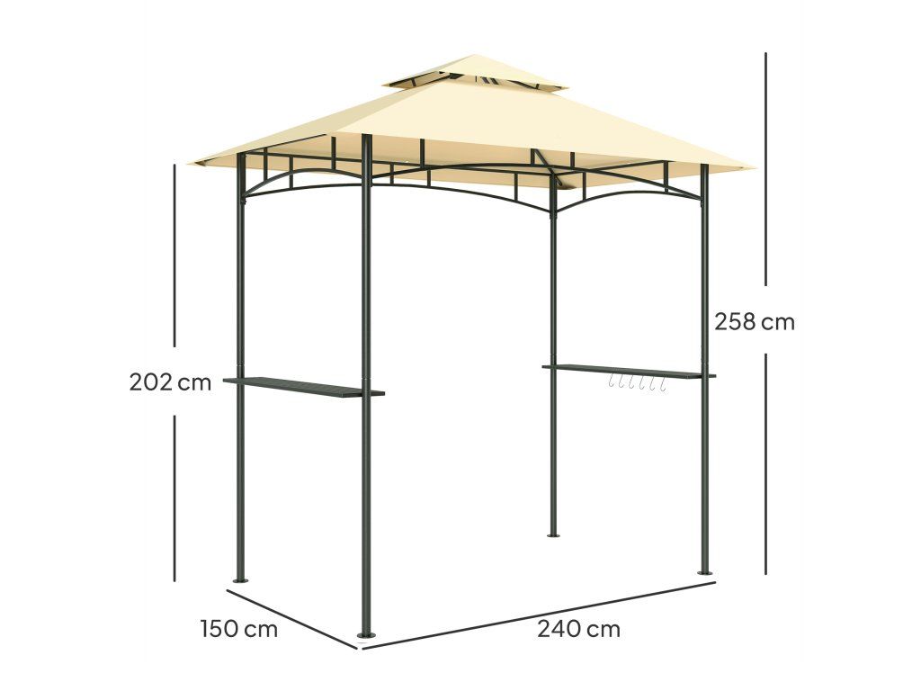- Celkové rozměry altánu: 240L x 150W x 258H cm. Nosnost: 40 kg (police), 5 kg (hák). Nutná montáž. Poznámka: Tento kovový altán je vhodný pro grily o šířce až 180 cm, před nákupem si prosím zkontrolujte rozměry.