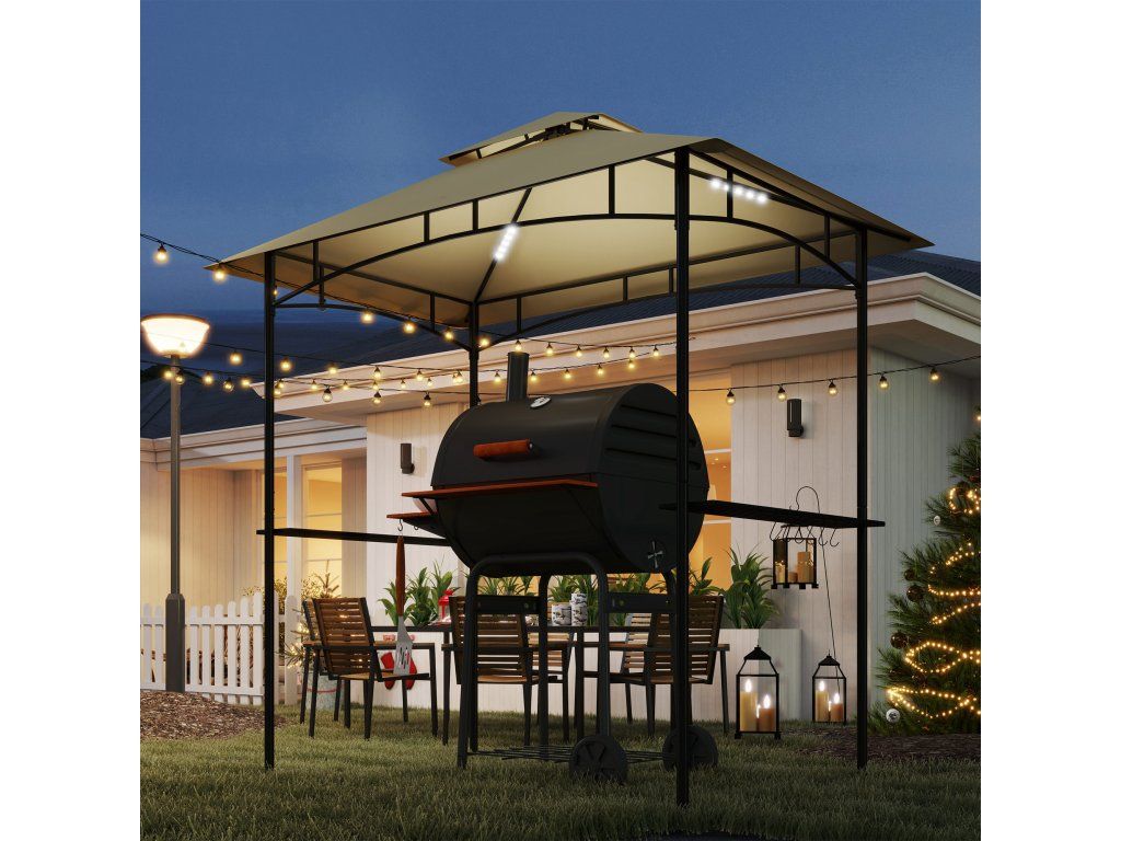 Gril pavilon s LED 240 x 150 x 258 cm vodoodpudivý nehořlavý zahradní pavilon s dvouvrstvou střechou