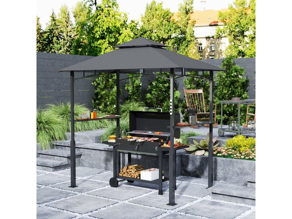 - Doppelschichtiges Vordach: Dieser Grillpavillon bietet ein doppelstöckiges Design mit einer Kunststoff-beschichteten Abdeckung, die Luftzirkulation unterstützt, Rauchbildung reduziert und Feuerfestigkeit, UV-Schutz sowie Wasserfestigkeit gewährleistet