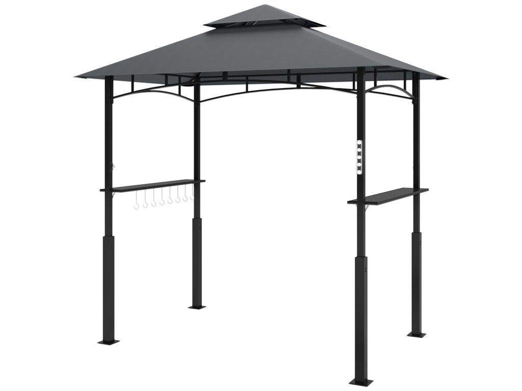 Grillpavillon, Gartengrillzelt mit Gewürzregalen, LED-Beleuchtung, Metall, Kunststoff, 243L x 148B x 248H cm, Grau