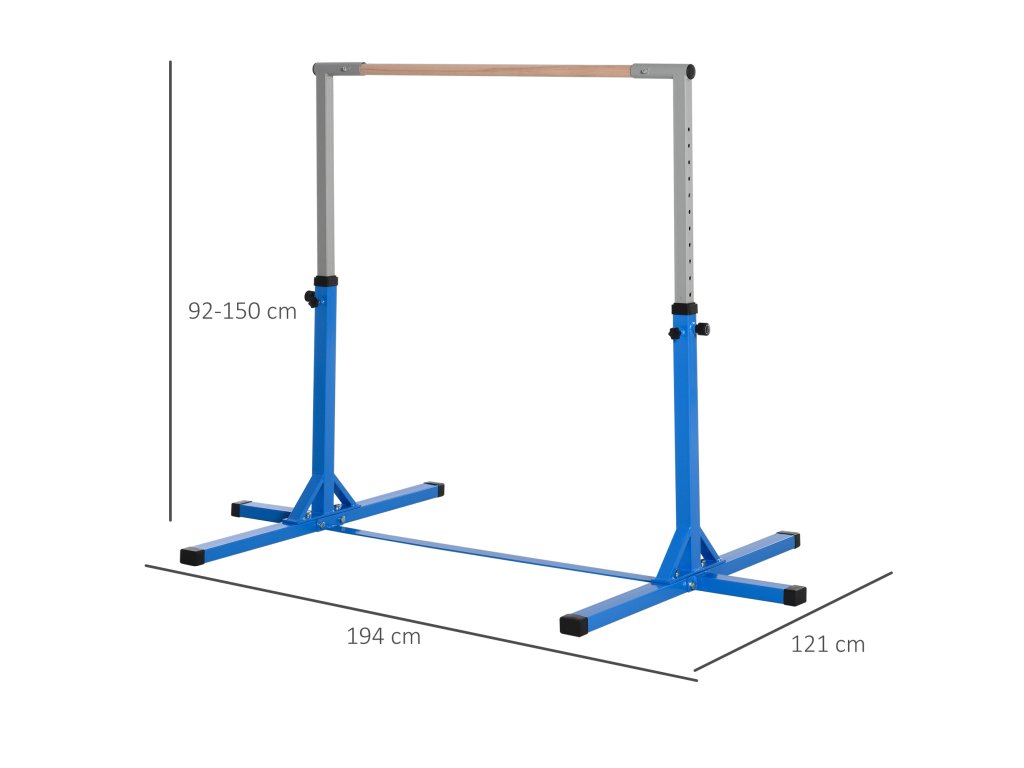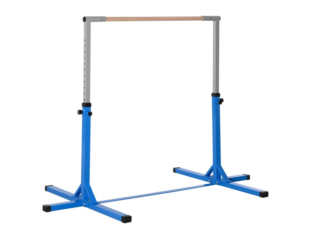 Gymnastik-Turnreck, 13-stufig höhenverstellbar Reckstange, Reck Turnstange aus Holz & stabile Stahlkonstruktion bis 75 kg belastbar, für 3+ Kinder, Indoor, Outdoor, Blau
