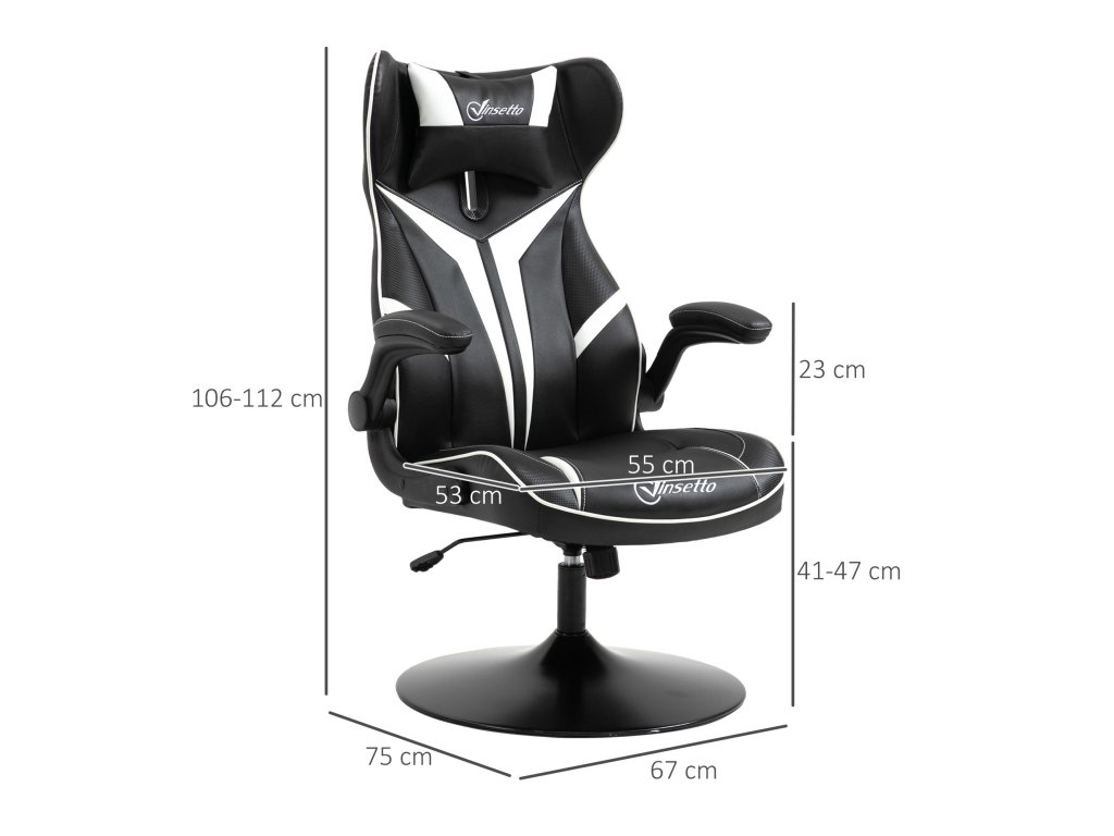 Herní židle Vinsetto ergonomická počítačová židle s funkcí houpání otočná židle výškově nastavitelná ocel černá+bílá 67 x 75 x 106-112 cm | Aosom