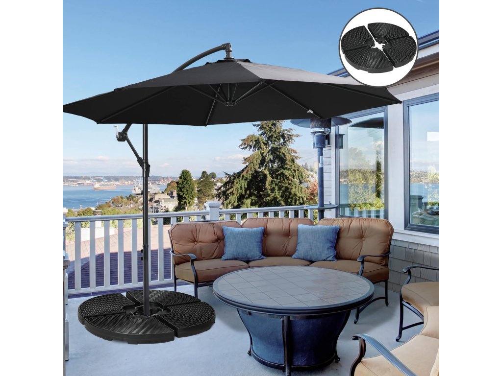 - Čtyři závaží: Čtyři závaží pro stojan na slunečník jsou určena pro konzolové banánové slunečníky a udrží váš letní zahradní slunečník ve vzpřímené poloze a na místě, aby poskytoval stín venku. Křížový podstavec není součástí dodávky