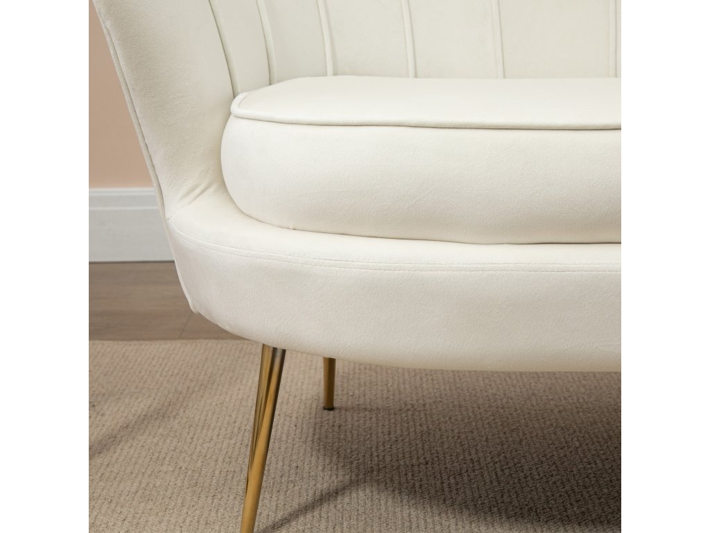 HOMCOM 2místná pohovka gauč čalouněná pohovka sametová područka do 150 kg obývací pokoj ložnice krémová 130x77x77cm | Aosom