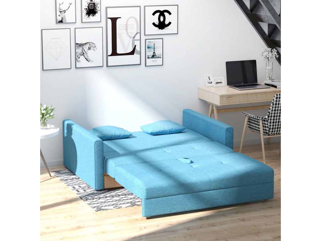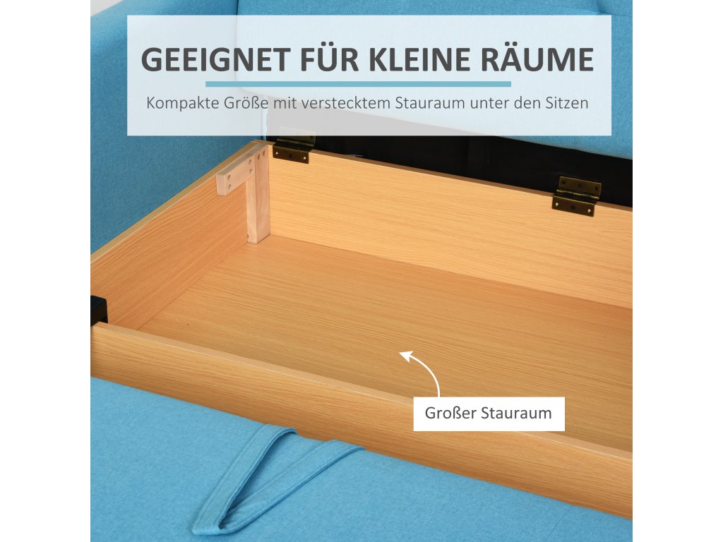 - ✔ Konstrukce 2 v 1: kompaktní dvoumístná pohovka, rozkládací pohovka a úložný prostor pod sedákem.