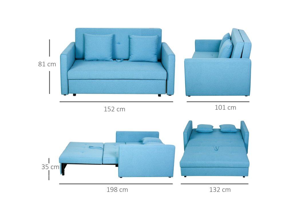 - Údaje o výrobku: Pohovka: 152B x 101D x 81H cm. Postel: 132B x 198D x 35H cm. MAXIMÁLNÍ NOSNOST: 200 KG. NUTNÁ MONTÁŽ.