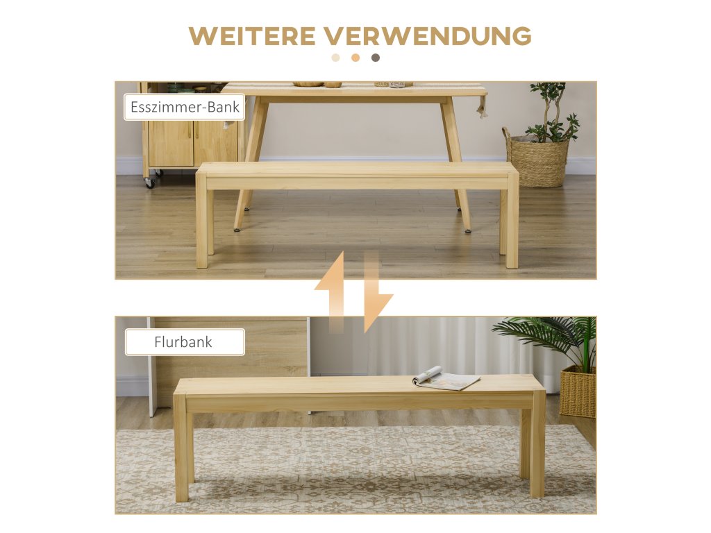 HOMCOM 3místná dřevěná lavice Jídelní lavice ve venkovském stylu z borovicového dřeva s nosností do 330 kg přírodní 150 x 33 x 45 cm do kuchyně a jídelny | Aosom.de