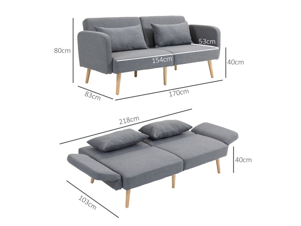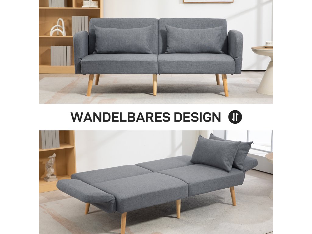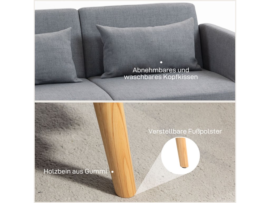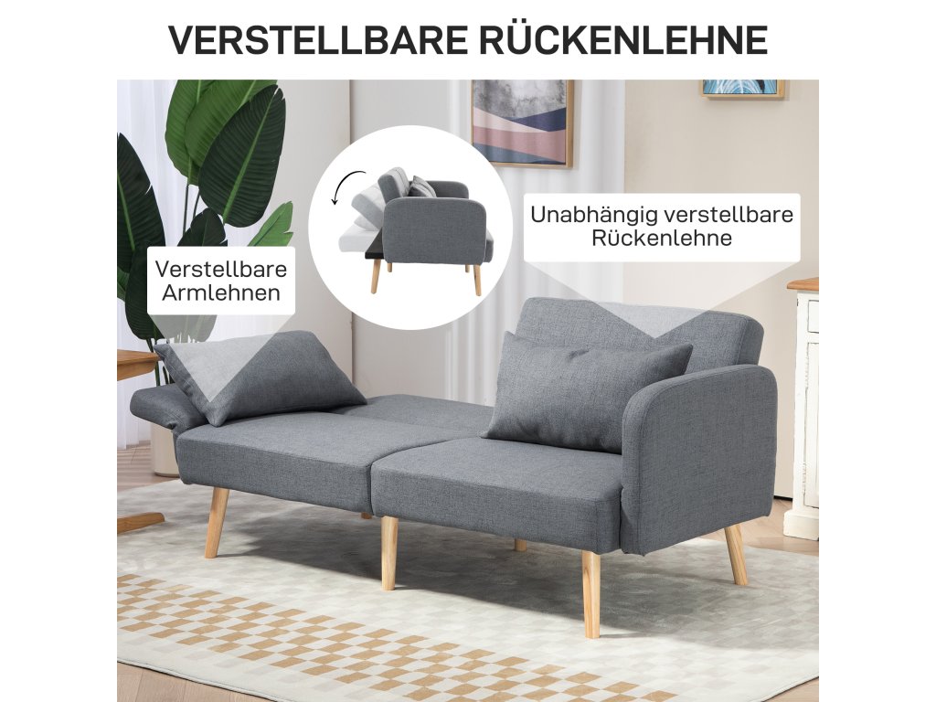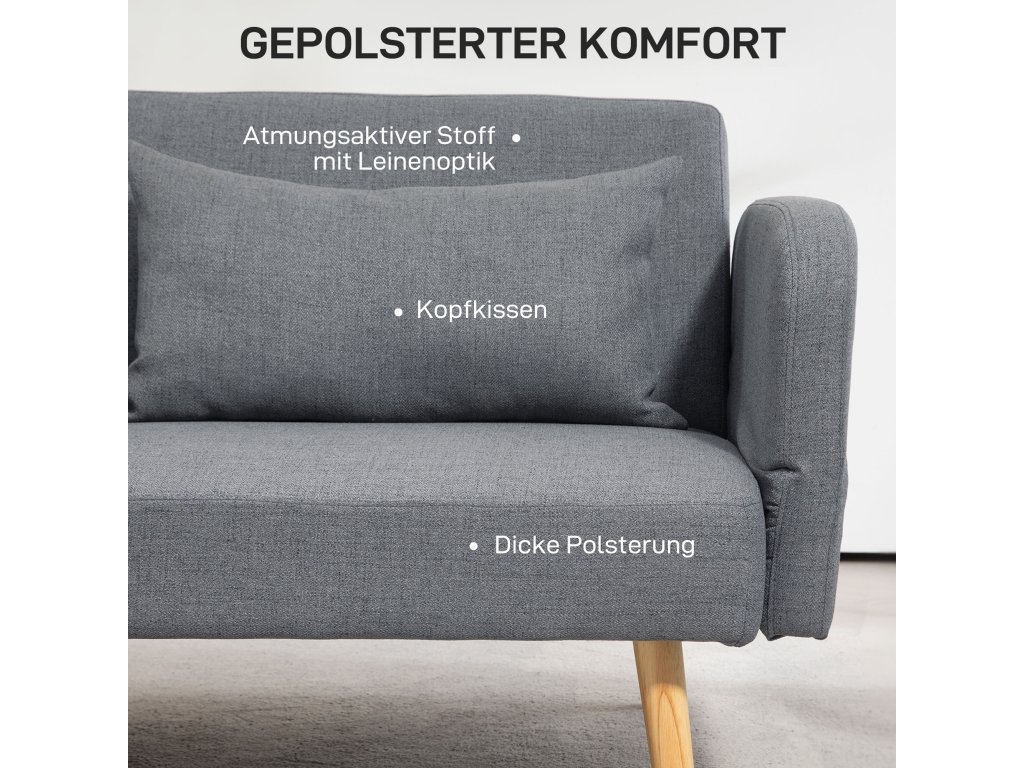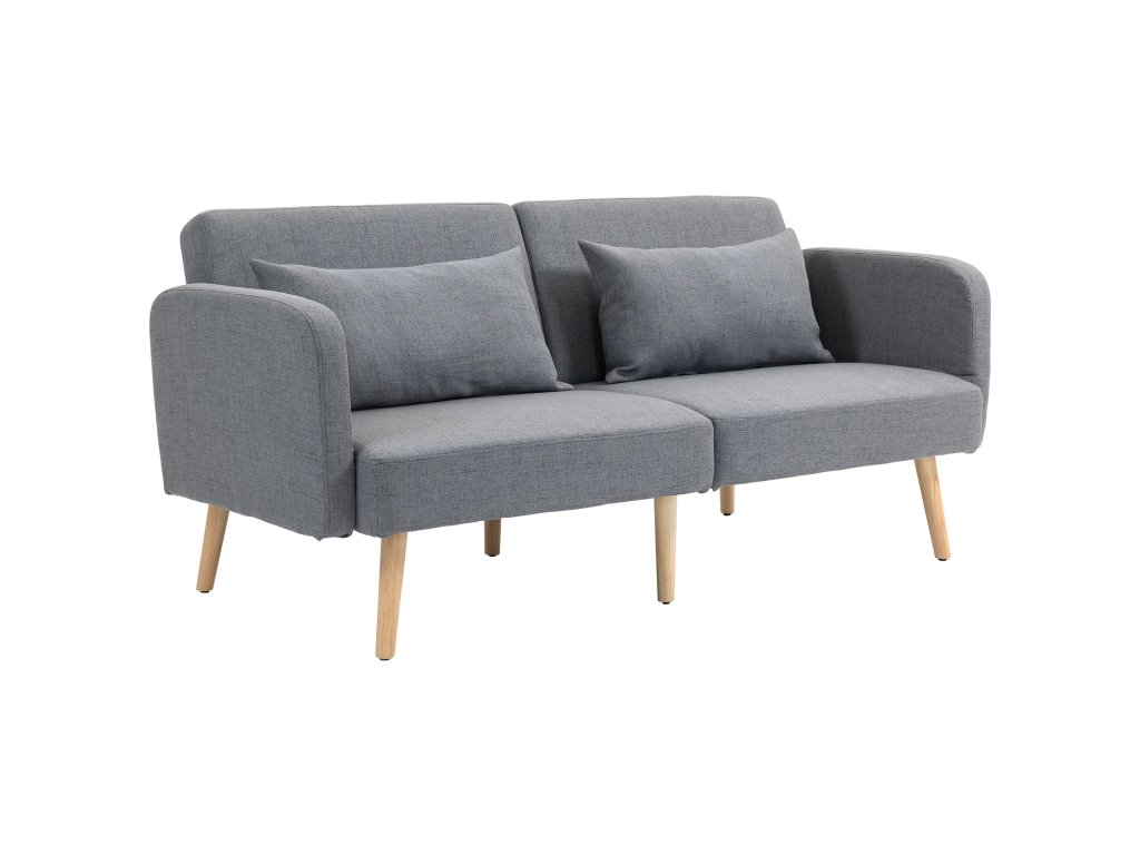 S touto rozkládací pohovkou HOMCOM budete vždy připraveni na spontánní noční návštěvy. Třímístná pohovka se v mžiku promění v útulné dvoulůžko. Vychutnejte si pohodlí dvou přídavných polštářů a pružného vlnkového pérování rozkládací pohovky, která je zabalena do elegantního potahu z látky lněného vzhledu. Skvěle se hodí do pracovny, obývacího pokoje nebo pokoje pro hosty. Dokonalá kombinace pohodlí a praktického designu!
