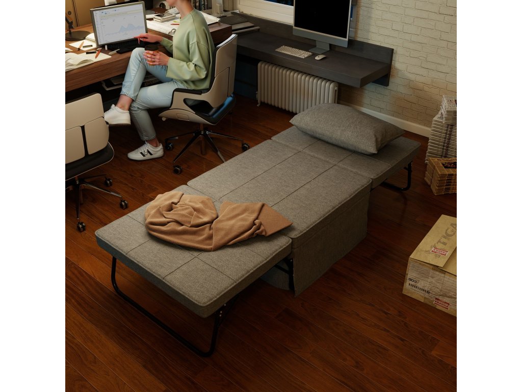 HOMCOM 4-v-1 jednolůžko pro hosty, rozkládací postel, křeslo s otomanem, matrace 8 cm, 5-stupňová regulace výšky, ocelový rám, 188x75x38cm| Aosom