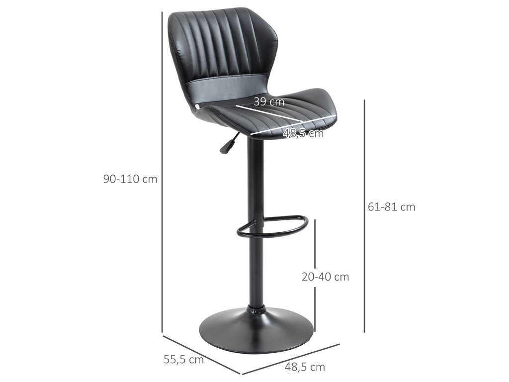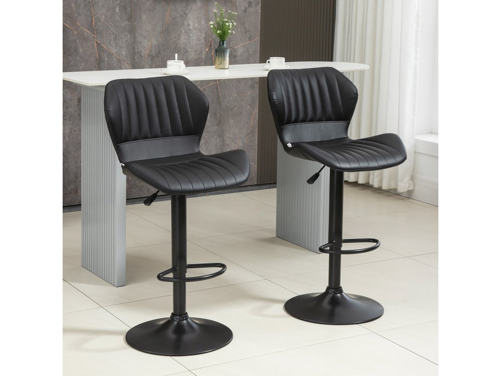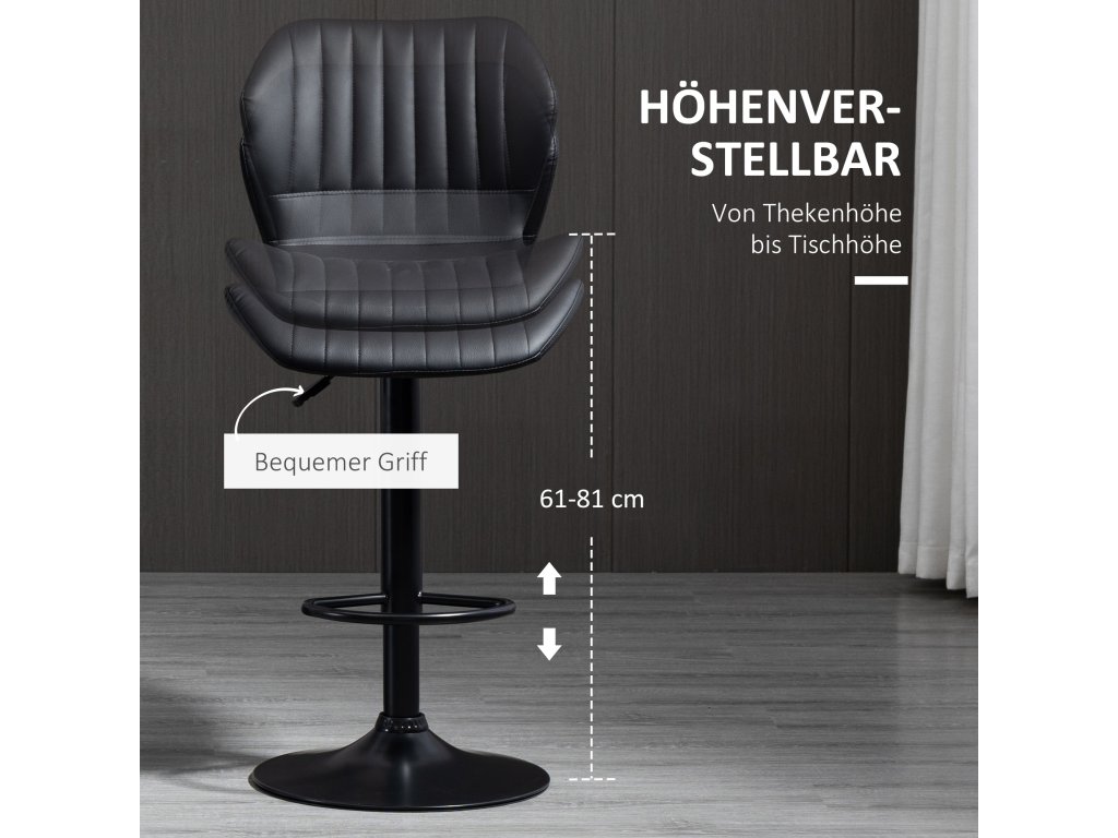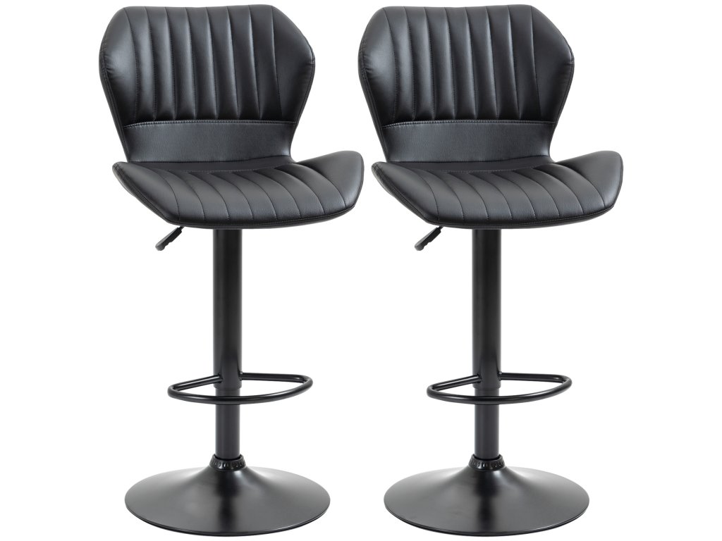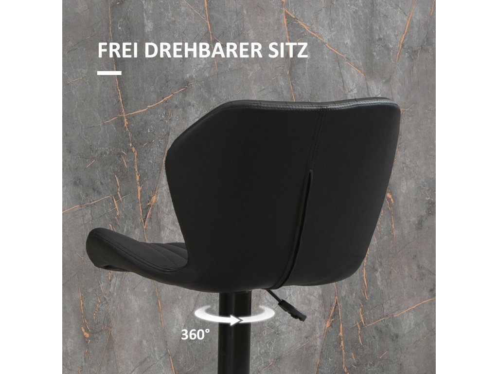 HOMCOM Barová židle výškově nastavitelná sada 2 otočných židlí otočných o 360° s opěradlem v imitaci kůže 48,5x55,5x90-110 cm do kuchyně a baru | Aosom.de