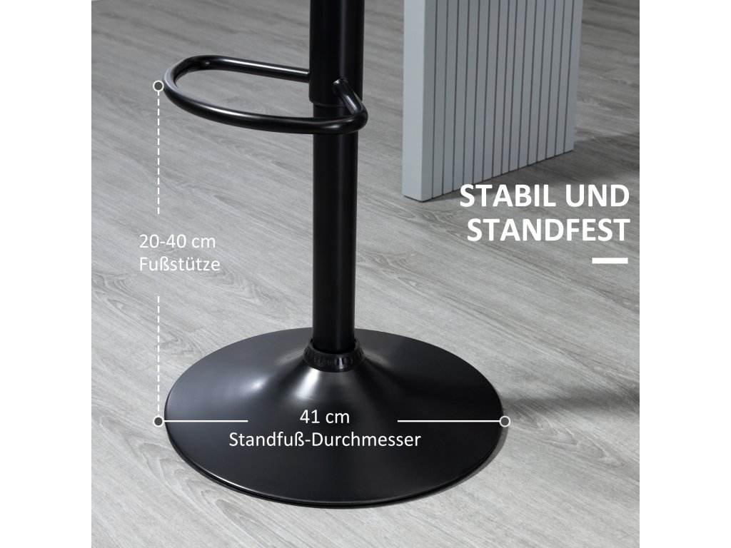 Oživte svůj domov těmito dvěma vkusnými barovými stoličkami od společnosti HOMCOM. Opěradlo ve tvaru mušle je nejen mimořádně dekorativní, ale umožňuje také mimořádně pohodlné a uvolněné sezení. Jsou vybaveny volně otočným sedákem a praktickou opěrkou na nohy, díky níž vždy rychle najdete optimální polohu. Díky plynulému nastavení výšky lze barovou židli bez námahy přizpůsobit širokému rozsahu výšek pultů a stolů.