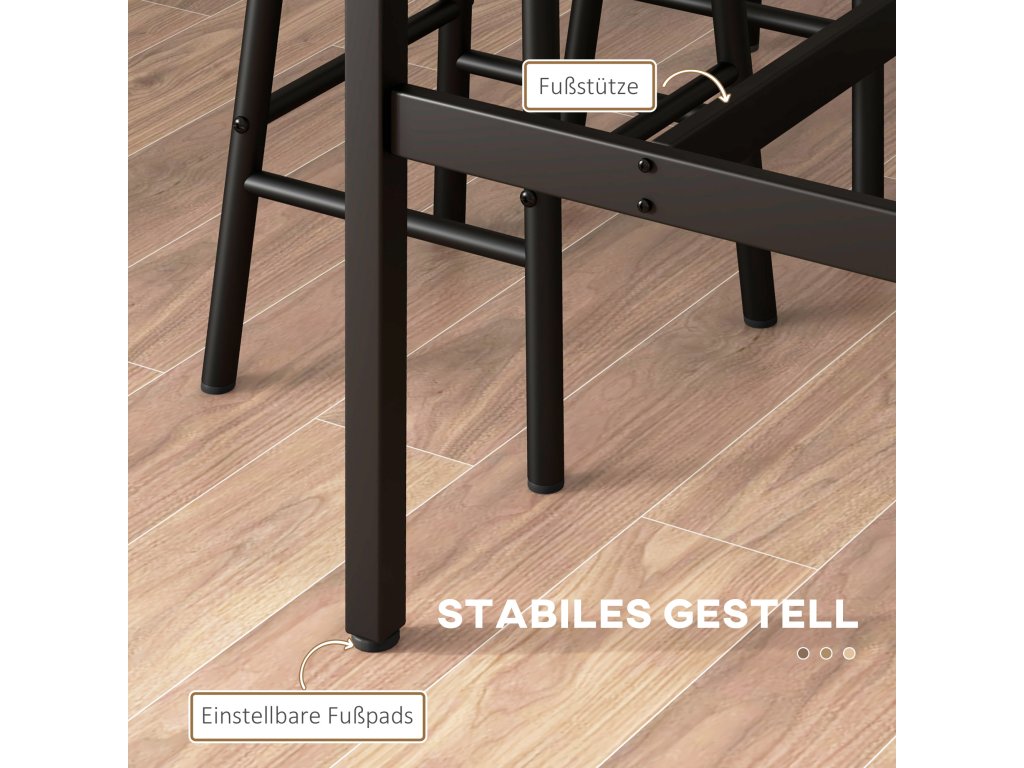 - 3dílná barová sada: Skládá se z barového stolu a dvou odpovídajících stoliček a je ideální pro společné posezení ve dvojici a pohodové stolování. Desky v dřevěném vzhledu s černým rámem dodají vašemu domovu nádech elegance