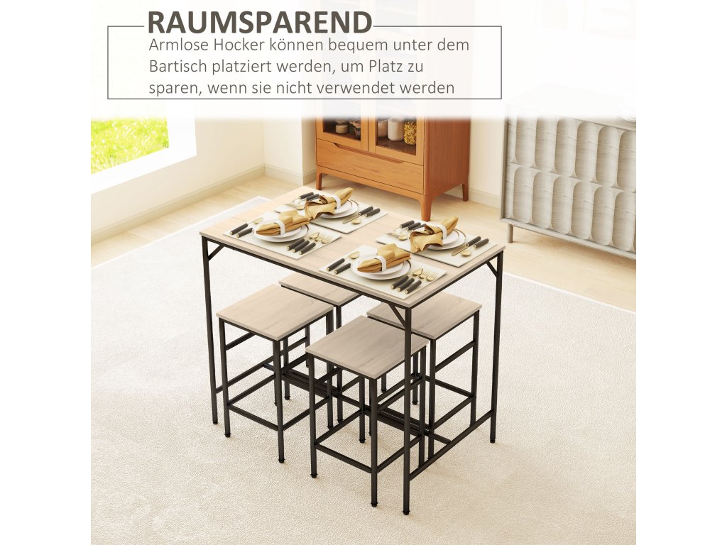 HOMCOM Barový set 5dílný s vysokým stolem a 4 barovými židlemi, kuchyňská linka, jídelní set, ocelový dub černý 100x60x88cm | Aosom.de