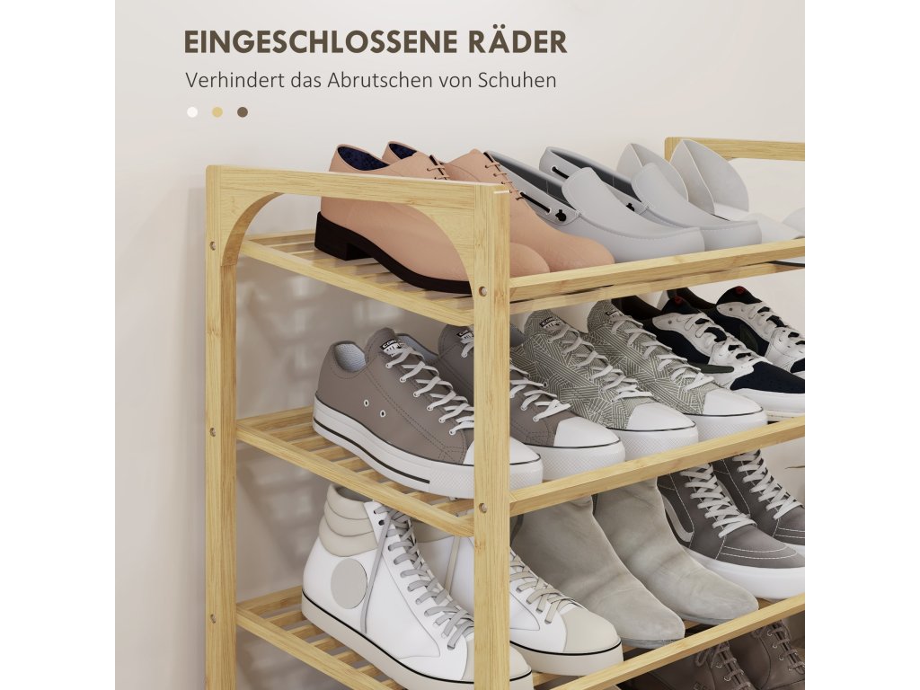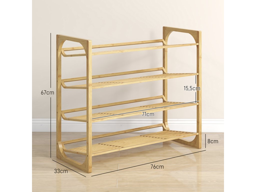 HOMCOM Botník Bambusový botník 4 úrovně až pro 12 párů bot s madlem do ložnice 76 x 33 x 67 cm Příroda | Aosom.de