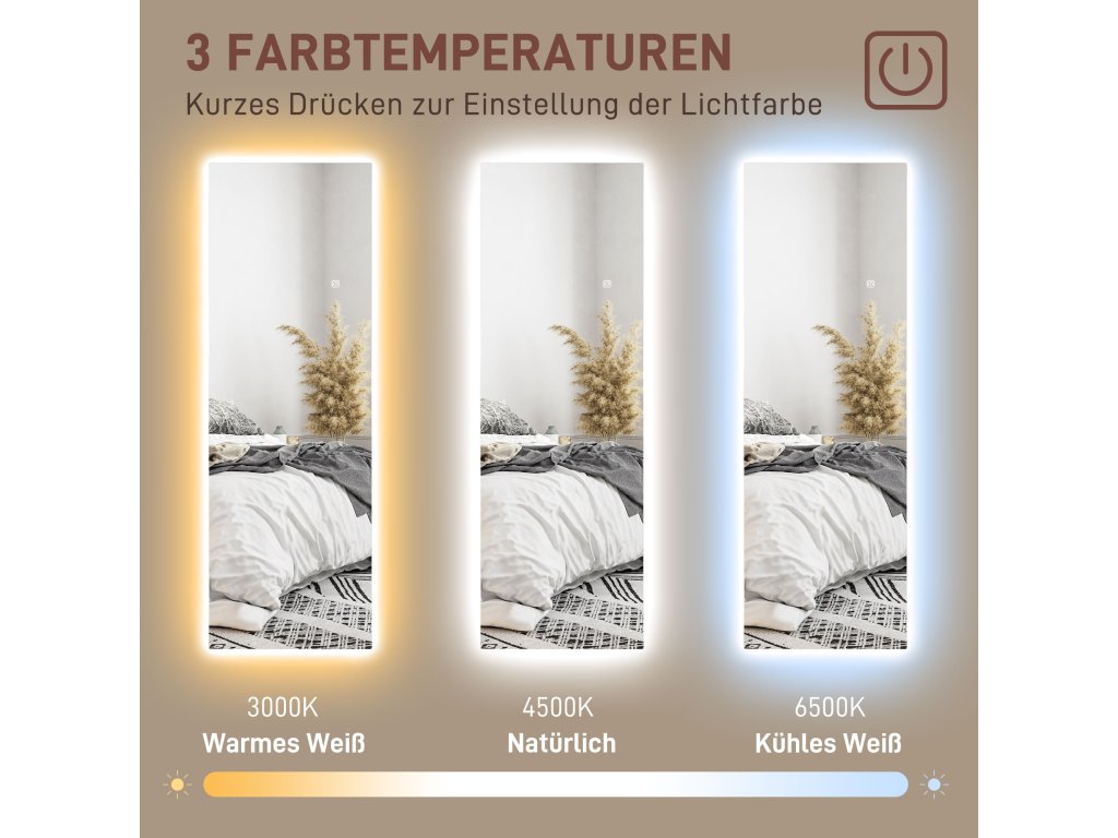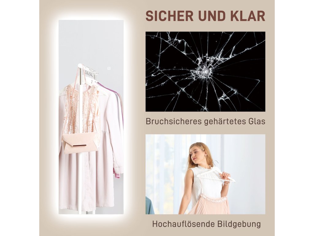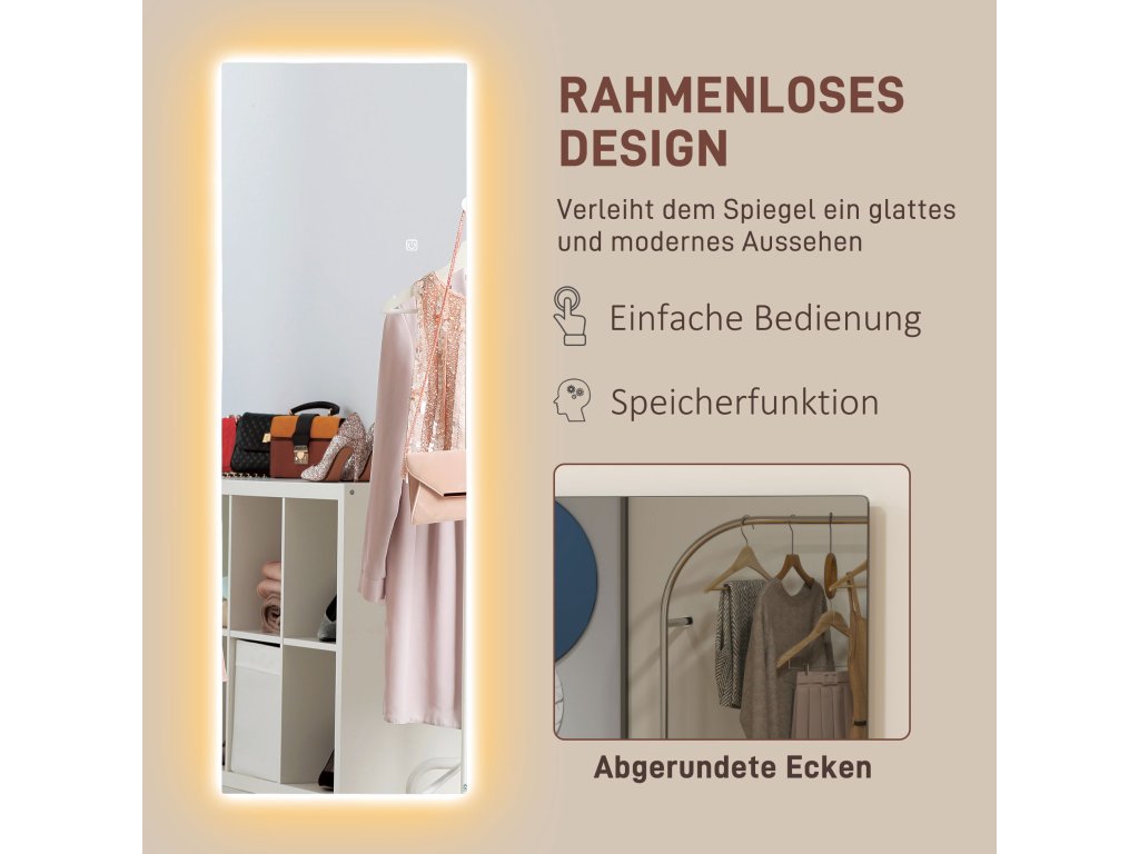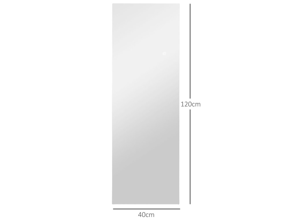 HOMCOM celoplošné zrcadlo 40 x 120 cm stojící zrcadlo s LED světlem, nástěnné zrcadlo s dotykovým ovládáním, bezrámové podlahové zrcadlo, do ložnice, obývacího pokoje
