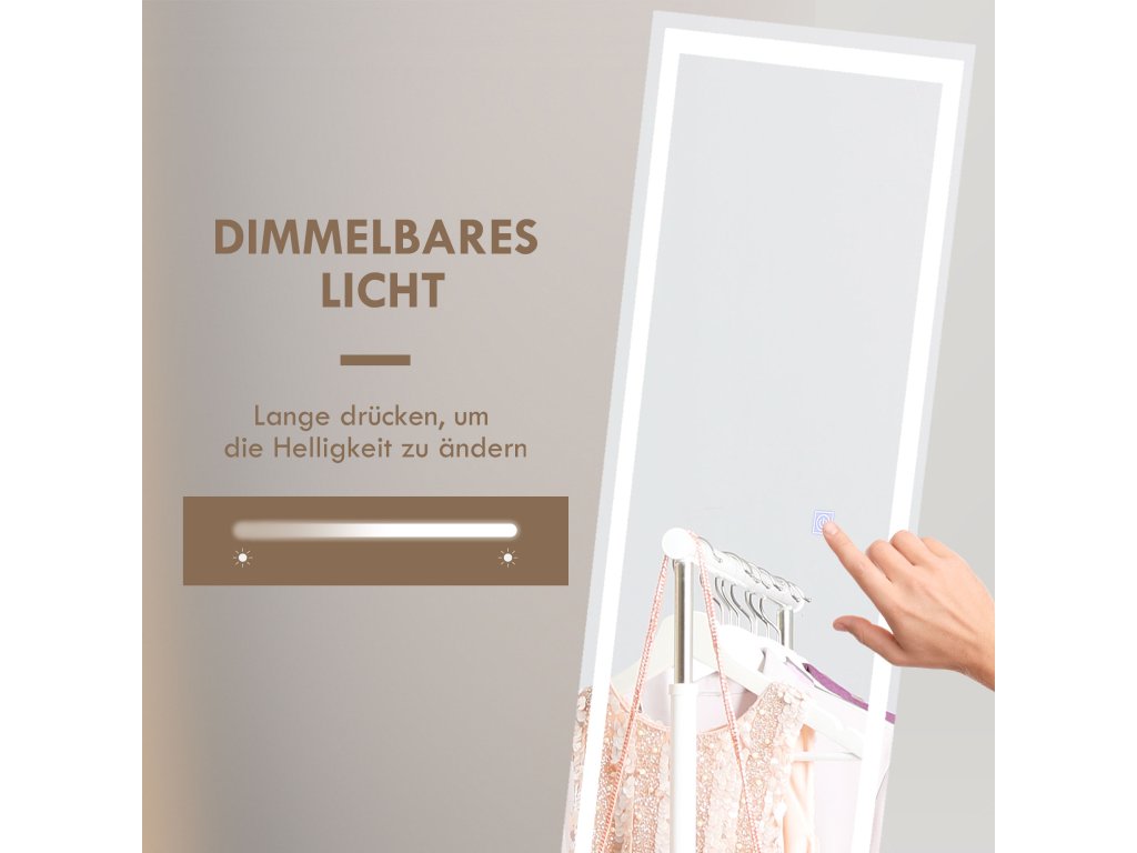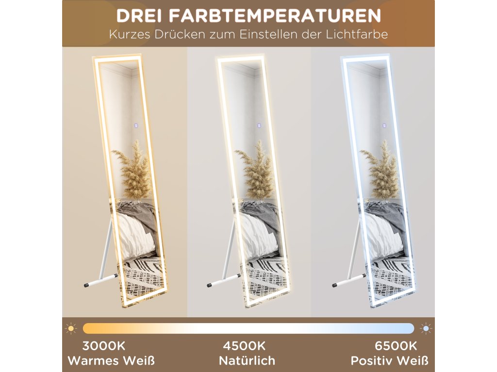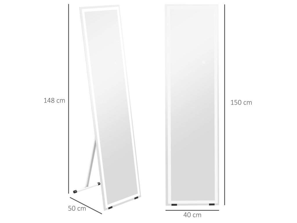 HOMCOM Celoplošné zrcadlo 40x150cm Stojací a nástěnné zrcadlo s LED osvětlením 3 barvy světla Dotykový spínač v bílé barvě | Aosom.de