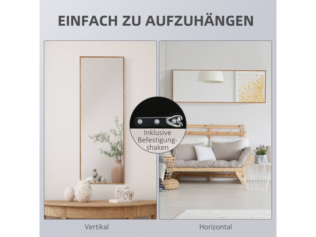HOMCOM Celoplošné zrcadlo na zeď 125x45cm s dřevěným rámem v přírodní barvě do šatní skříně, předsíně nebo ložnice | Aosom.de