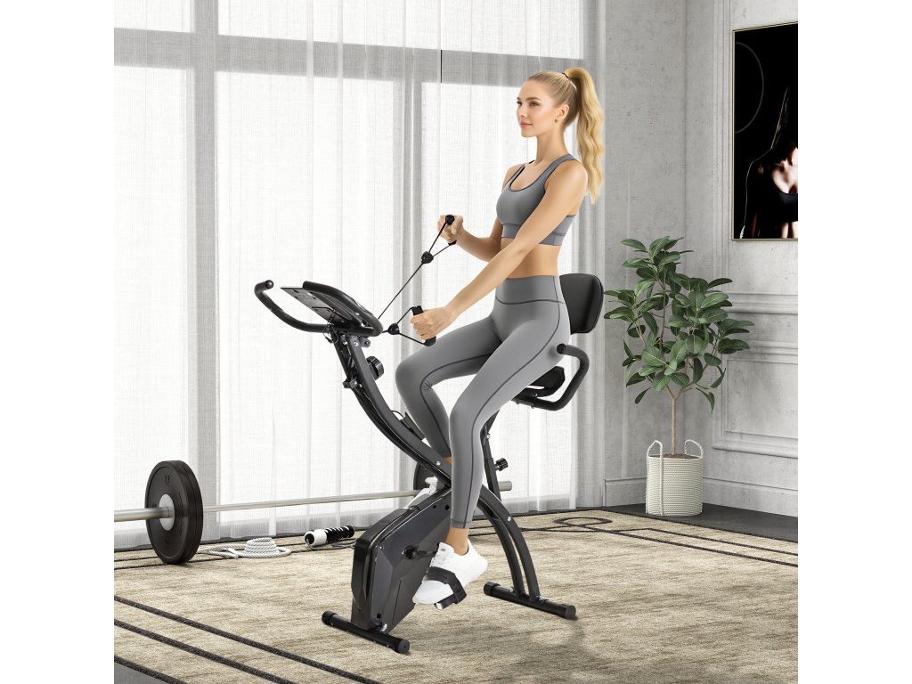 HOMCOM Cvičební kolo, cyklotrenažér 2 v 1, domácí trenažér, skládací cvičební kolo s 8 úrovněmi nastavitelného magnetického odporu, 1 pár napínacích lan| Aosom