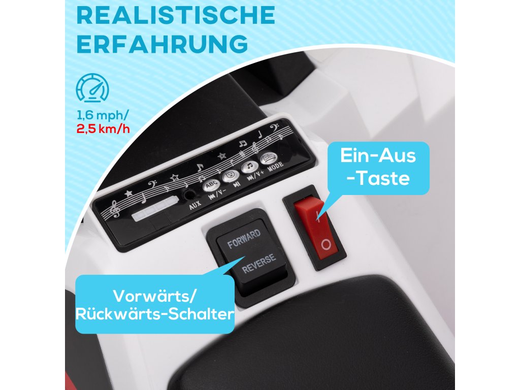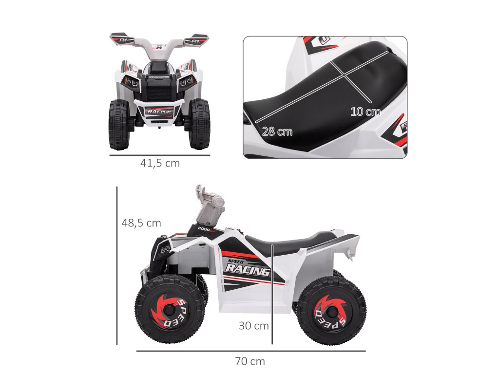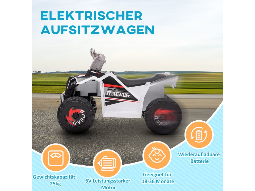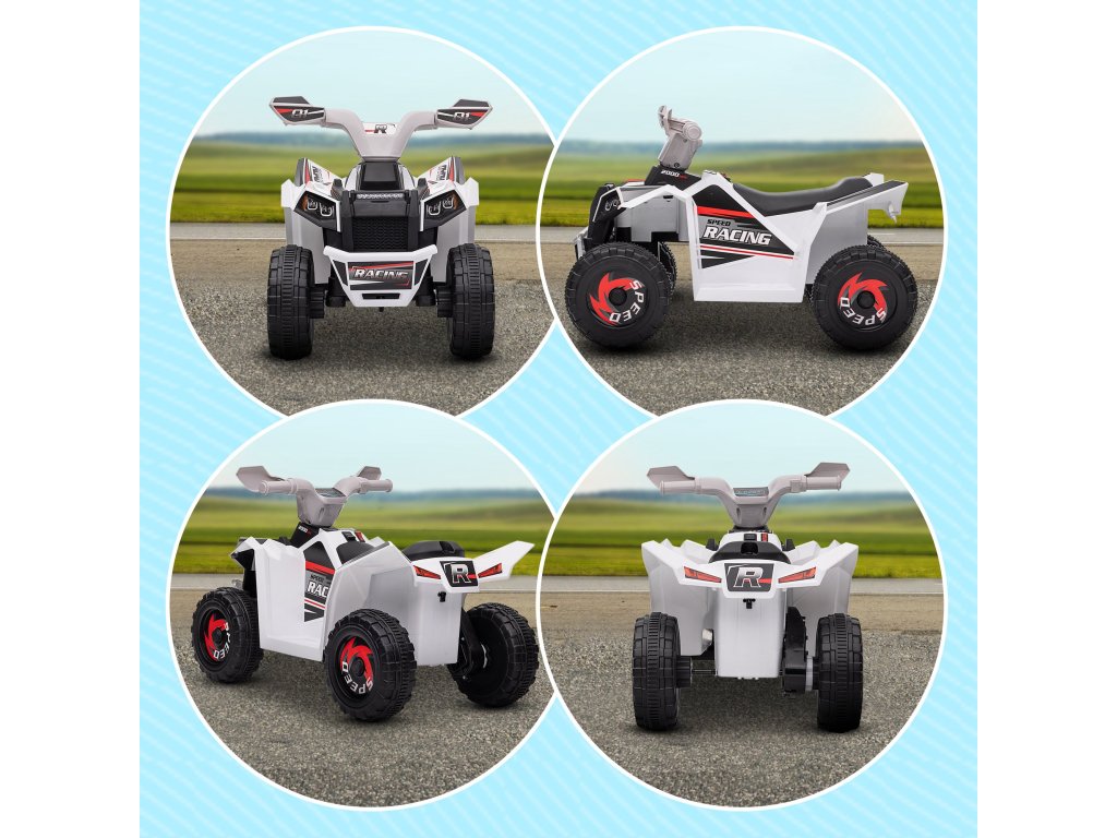 HOMCOM dětská elektrická čtyřkolka Mini elektrická čtyřkolka 6V s funkcí jízdy vpřed a vzad pro děti 1,5-3 roky 2,5 km/h v bílé barvě | Aosom.de