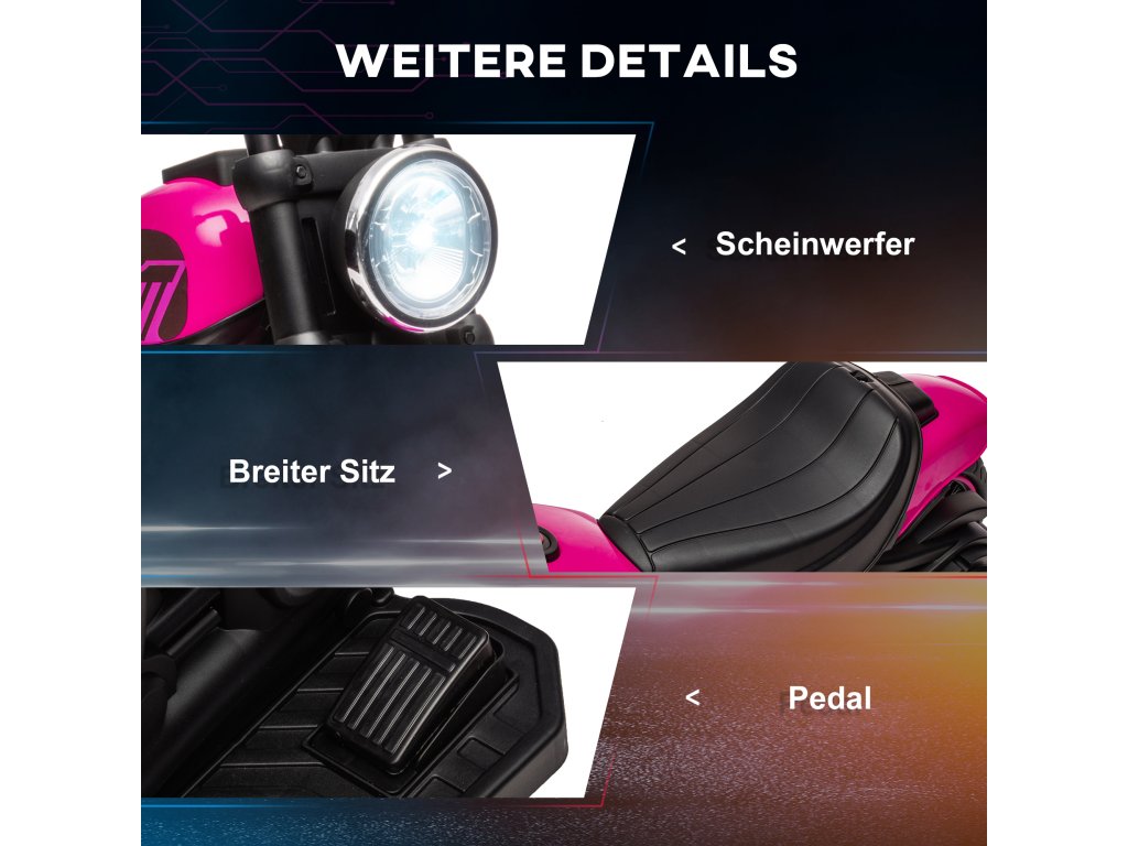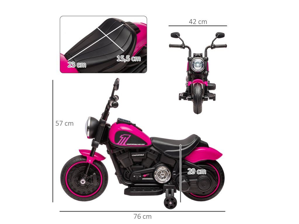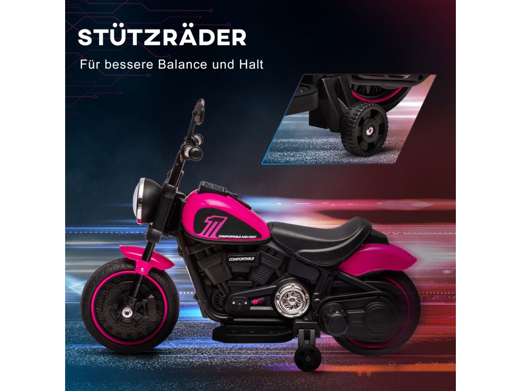 HOMCOM Dětská elektrická motorka s odnímatelnými tréninkovými koly, dětská motorka pro 1,5-3 roky, elektrické vozidlo v růžové barvě | Aosom.de