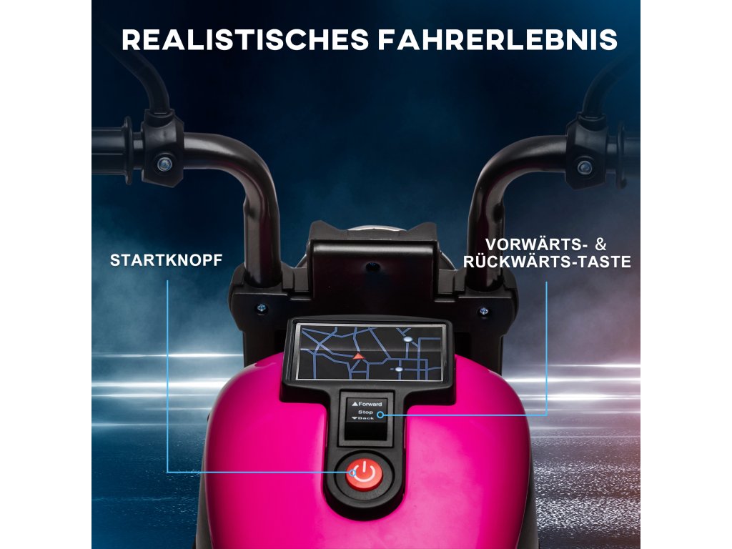 - Autentický zážitek z jízdy: Jediné sešlápnutí elektrického pedálu stačí k tomu, aby tato dětská motorka vyrazila vpřed. Funkce elektrické jízdy se světly a startováním jedním tlačítkem vaše děti pobaví a zaujme.