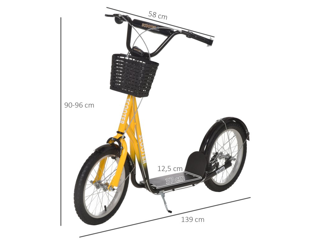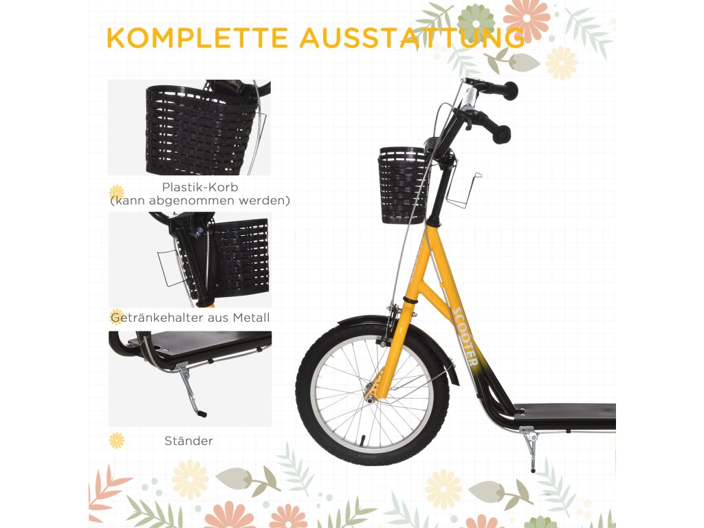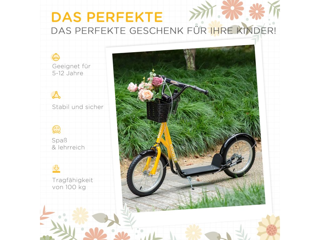 HOMCOM Dětská koloběžka, výškově nastavitelná koloběžka s velkými gumovými koly, 2 brzdy, dětská koloběžka s košíkem, držák na kelímek, pro 5-12 let| Aosom
