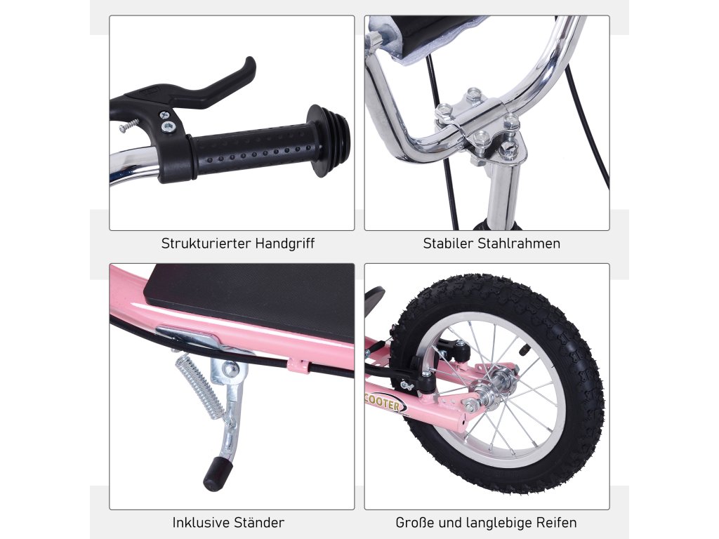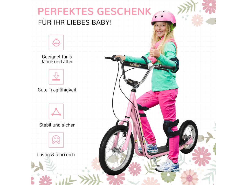 HOMCOM dětská koloběžka s brzdami 16/12 palců, odrazový můstek pro děti od 5 let v růžové barvě, městská koloběžka 135 x 58 x 92-100 cm | Aosom.de