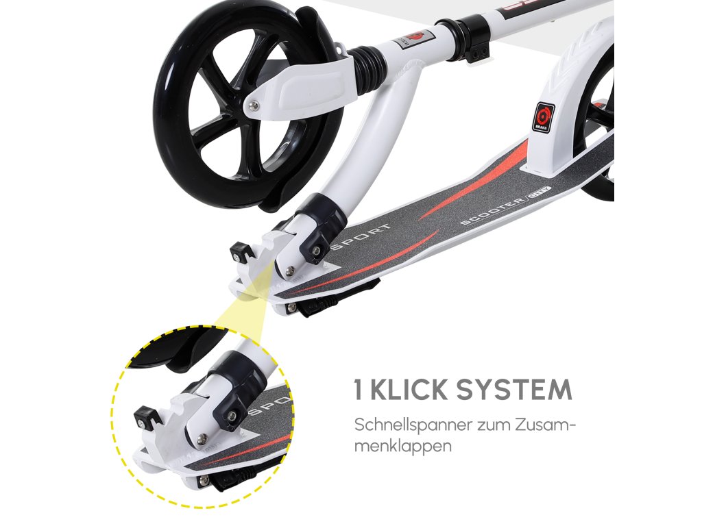 HOMCOM dětská koloběžka s tlumením nárazů skládací výškově nastavitelná od 14 let hliníková bílá 92,5 x 37,5 x 87-101,5 cm | Aosom.de