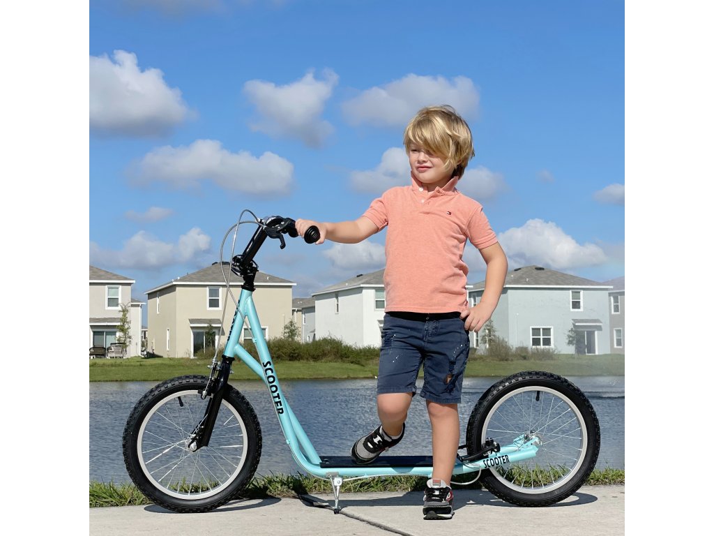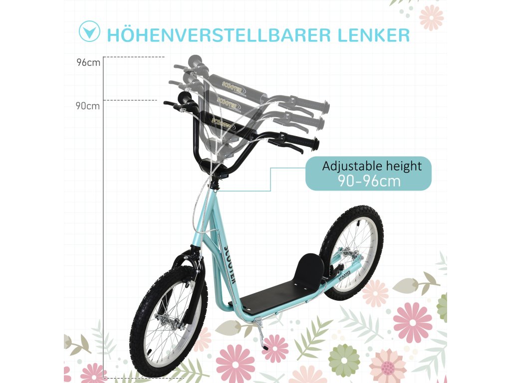 HOMCOM Dětská koloběžka Scooter Skládací koloběžka s pneumatikami a ruční brzdou, městská koloběžka, dobrodružství pro děti od 5 let, 16 palců| Aosom