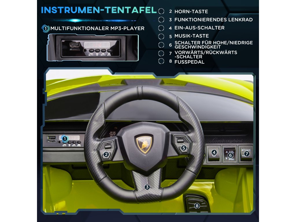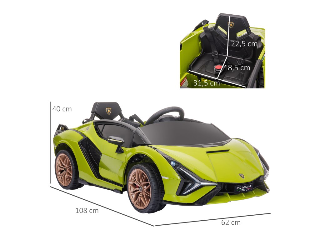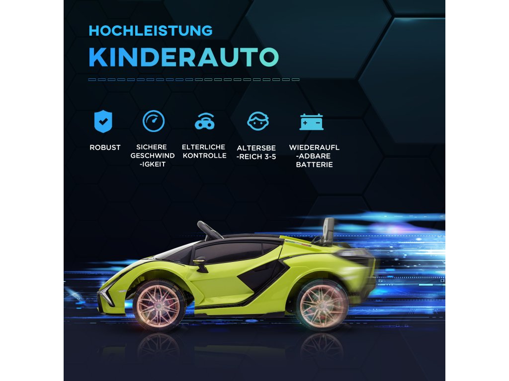 HOMCOM Dětské auto, 2 jízdní režimy, Lamborghini SIAN SUV auto na hraní, elektrické auto s dálkovým ovládáním, hudba (MP3/USB), 37-60 měsíců, zelené | Aosom