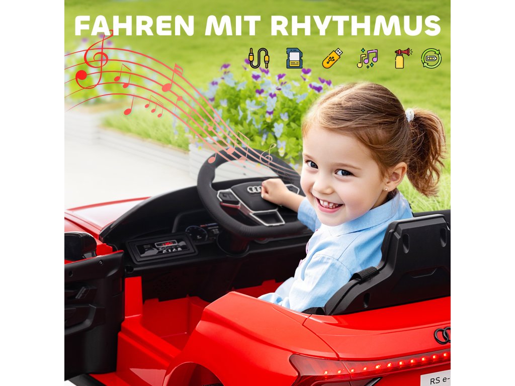 - Skvělé vlastnosti: Volant je vybaven klaksonem, který varuje zasněné chodce a šikovně upozorňuje ostatní děti na vozidlo. Díky připojení USB a AUX na palubní desce si mohou vaše děti broukat svou oblíbenou hudbu, zatímco budou dělat kolečka na hřišti.