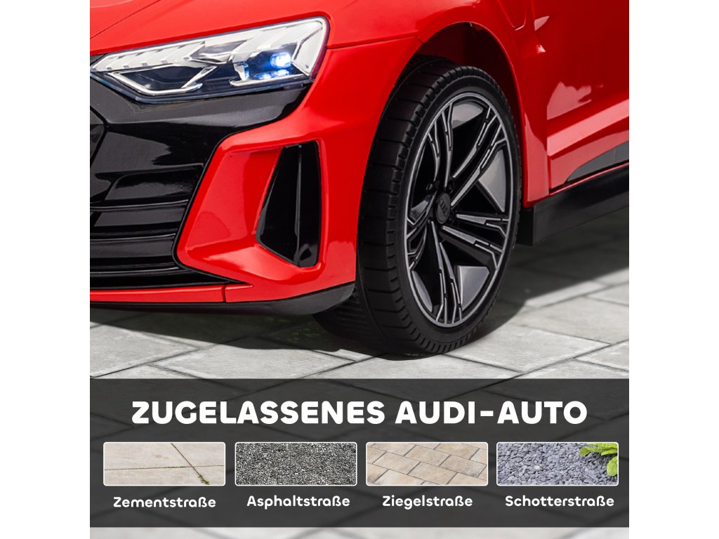 HOMCOM dětské elektrické autíčko, dětské autíčko na dálkové ovládání, AUDI RS e-tron GT dětské autíčko s bezpečnostním pásem, klaksonem a hudbou a světlomety, do 5 km/h, pro děti od 3-5 let, červené | Aosom