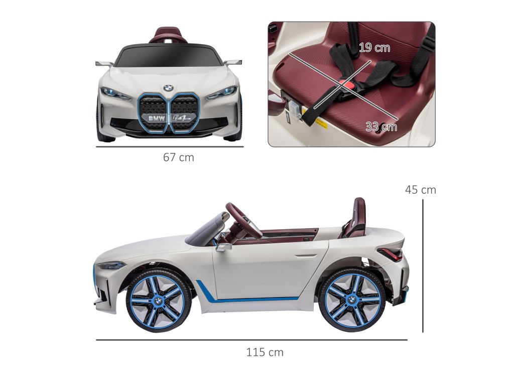 HOMCOM Dětské elektrické autíčko BMW s dálkovým ovládáním, přenosnou baterií, světlomety, MP3 přehrávačem, bezpečnostním pásem, 3-5 km/h, pro děti od 3-5 let, bílé | Aosom.de