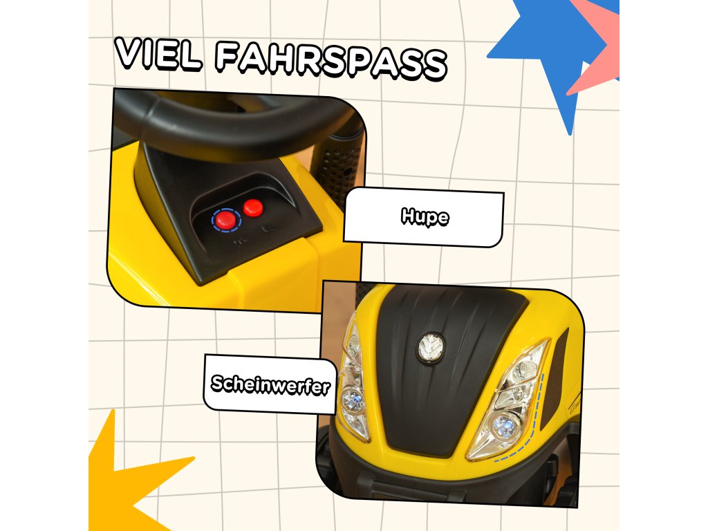 - Elegantní dětský traktor: Nechte své malé dítě objevit svět zábavy a dobrodružství s naší jedinečnou skluzavkou 2 v 1! Vaše dítě může hravě trénovat své nohy a učit se chodit s dětskou rukojetí. Součástí je vidlička a lopatka pro hraní v písku. Nezbytná výbava pro aktivní objevitele!