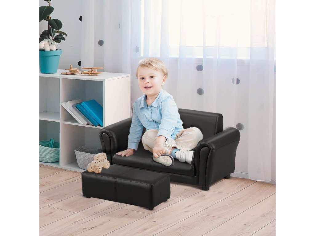 HOMCOM Dětské křesílko s podnožkou Dětský gauč a taburet v černé barvě, útulná pohovka pro děti 83x42x41cm | Aosom.de