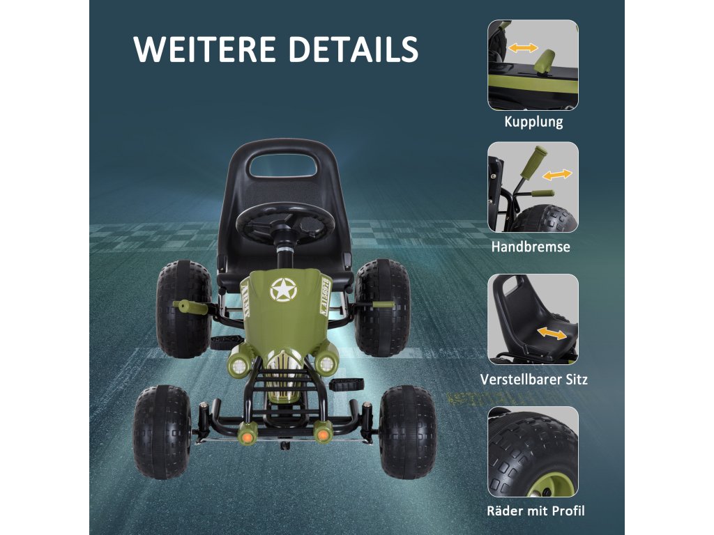 HOMCOM Dětské šlapací auto Go Kart s ruční brzdou od 3 let, zelené provedení 99x65x56cm pro venkovní zábavu |