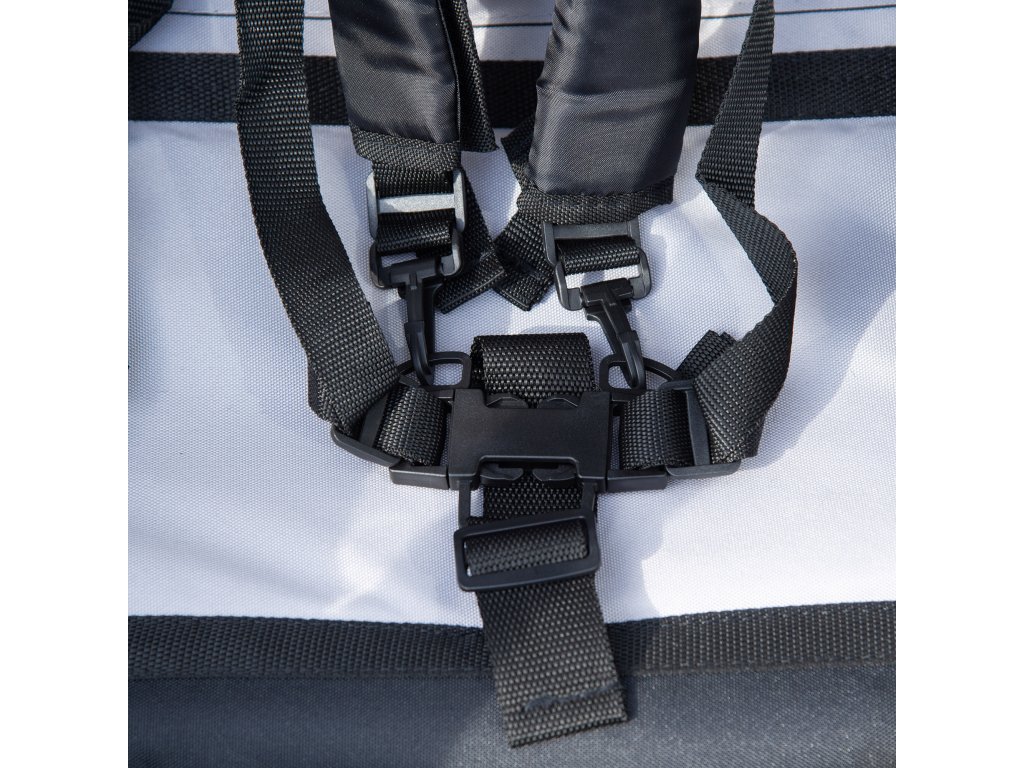 - ✔ Nastavitelné pětibodové bezpečnostní pásy pro bezpečné usazení dětí v sedačce