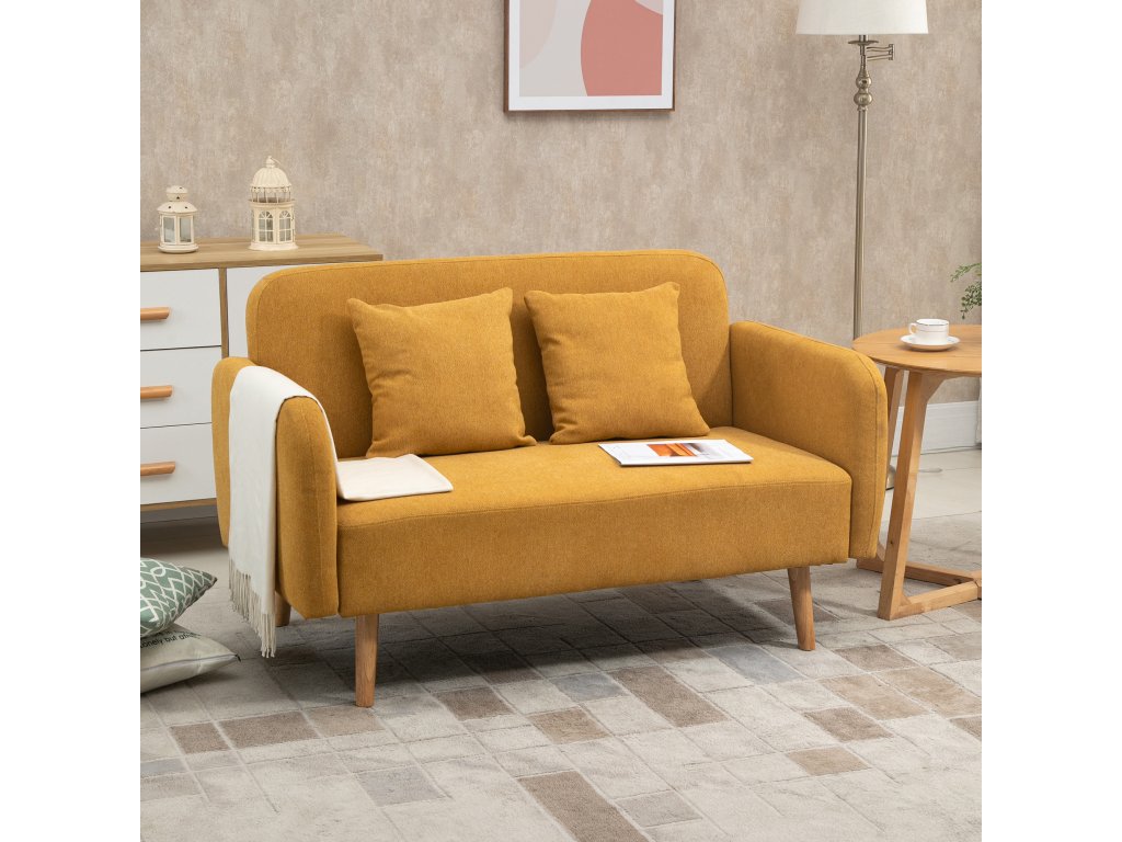 HOMCOM Dvoumístná pohovka s polštáři, nastavitelné podnožky, sametový polyester, pěna, kompaktní design, 2místná, přírodní+žlutá| Aosom