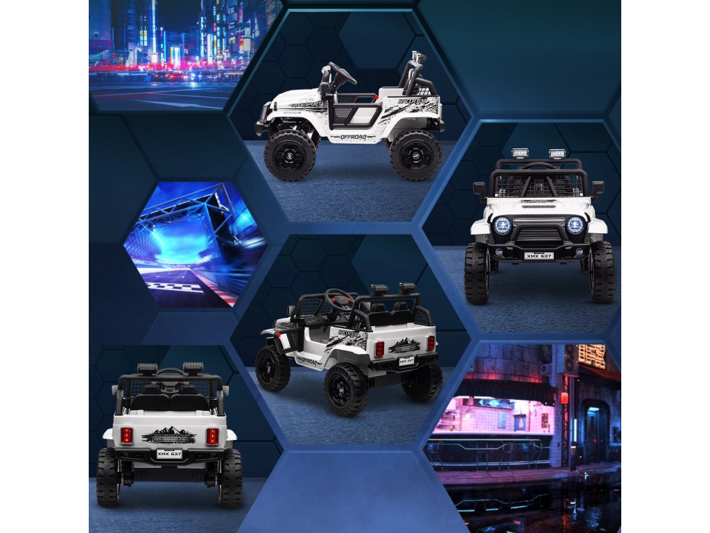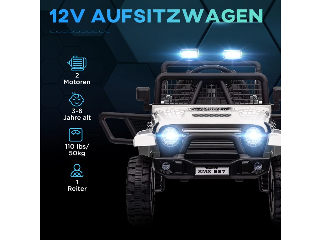 HOMCOM Elektrické dětské auto, terénní vozidlo 12 V 3-5 km/h s připojením na hudbu, dětské vozidlo s dálkovým ovládáním 2.4G, světlomety, klakson, dětské elektrické vozidlo pro děti 3-6 let, bílé provedení
