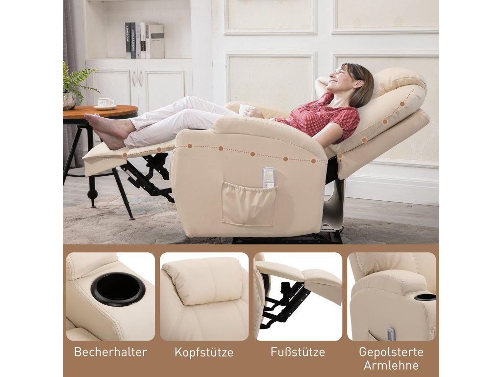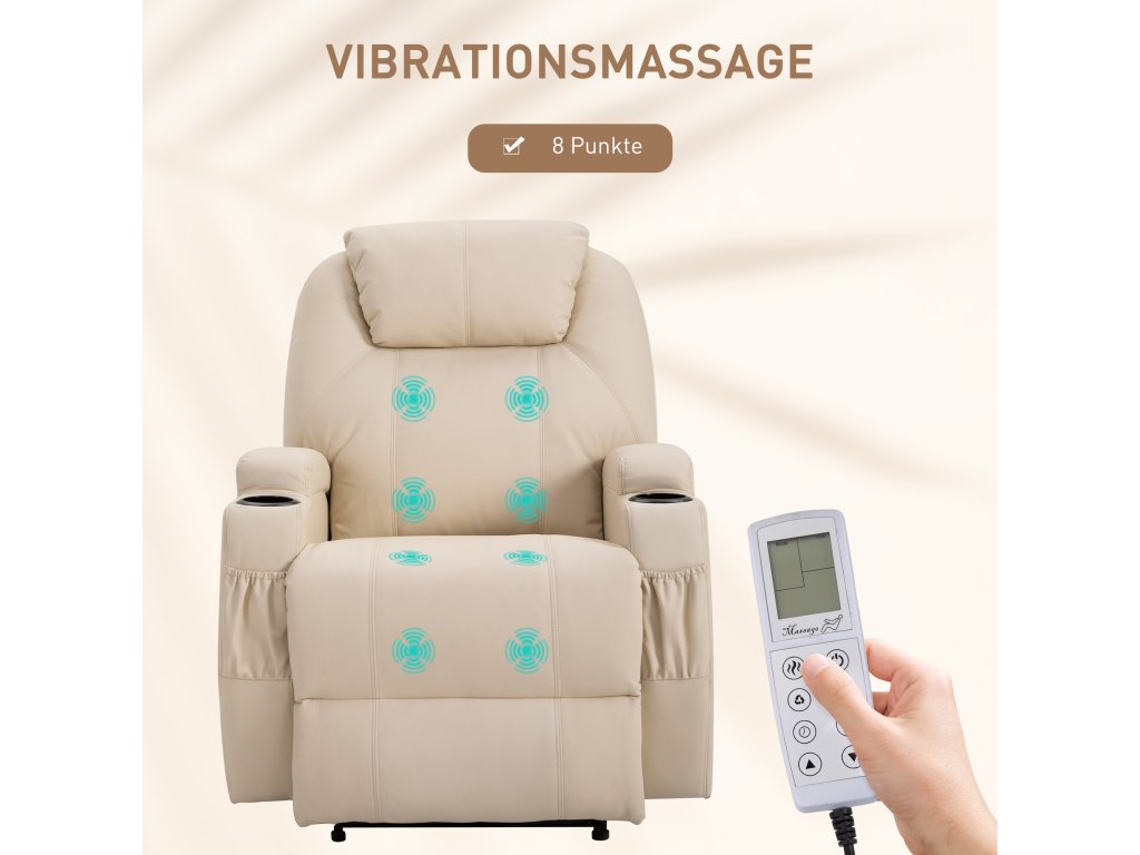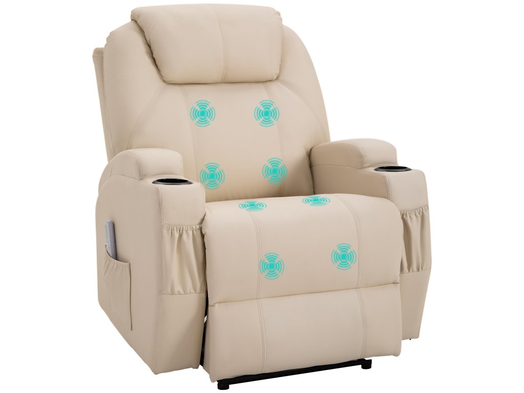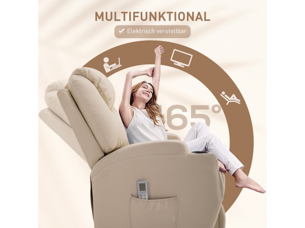 HOMCOM Elektrické polohovací křeslo, TV křeslo, masážní křeslo, masážní funkce, funkce polohování, imitace kůže, béžová barva, 82 x 97 x 110 cm | Aosom