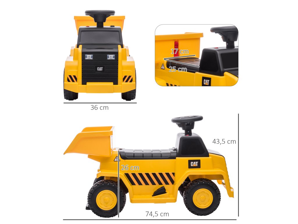 Podpořte fantazii svých dětí a proměňte jejich stavitelské sny ve skutečnost s tímto působivým elektrickým sklápěcím nákladním autem od společnosti HOMCOM! Díky velké naklápěcí nakládací ploše a klaksonu na volantu zažijí vaši malí stavitelé vzrušující stavební dobrodružství - ať už doma na zahradě, nebo na hřišti. Díky maximální rychlosti 3 km/h a velkým protiskluzovým plastovým kolům budou vaši nejmenší na cestách vždy v bezpečí a připraveni ponořit se do XXL stavební zábavy!