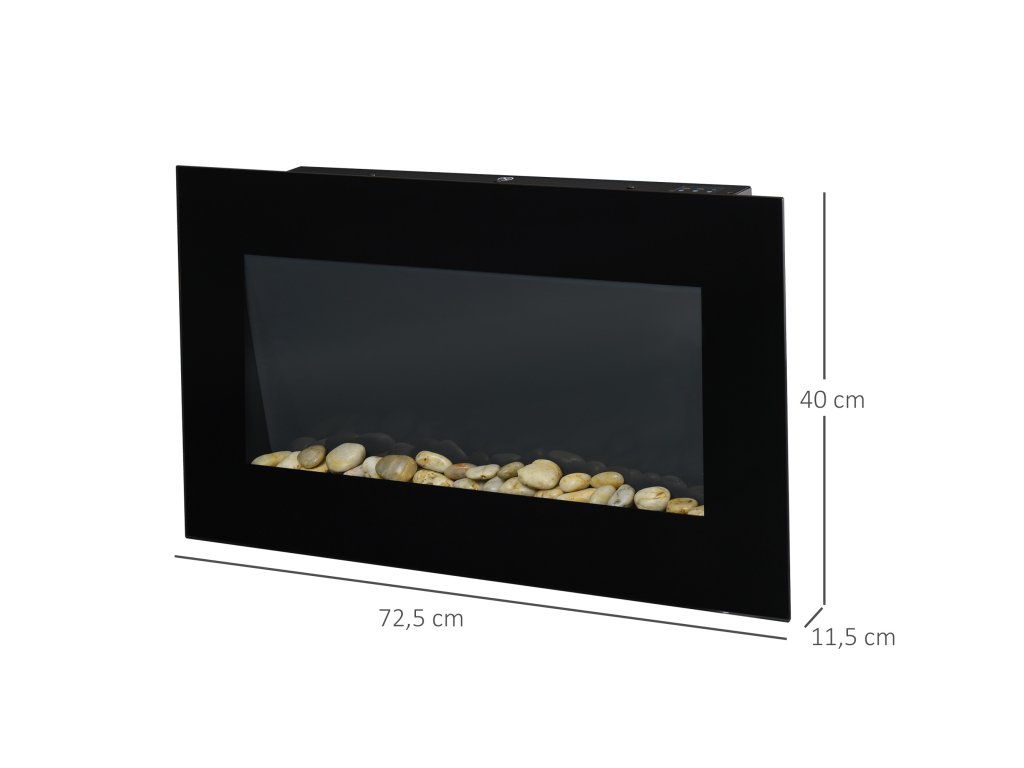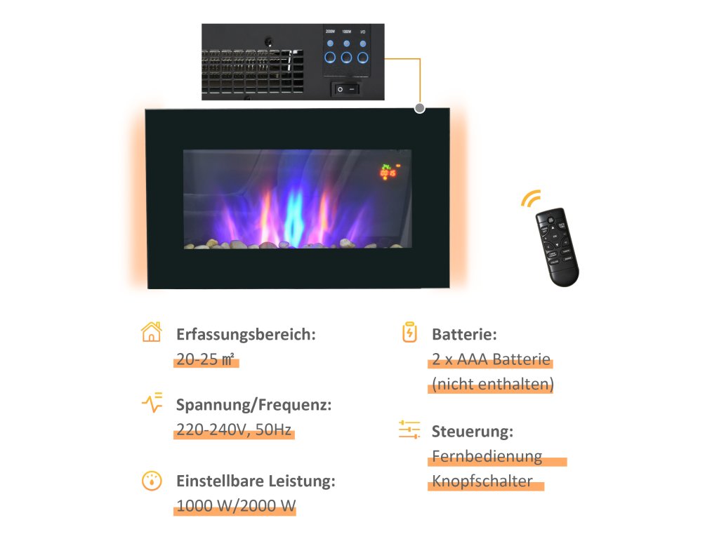 HOMCOM Elektrický krb s LED efektem plamene,1000/2000W, nástěnný krb v 7 barvách, elektrický krb s dálkovým ovládáním, nástěnný, černý | Aosom