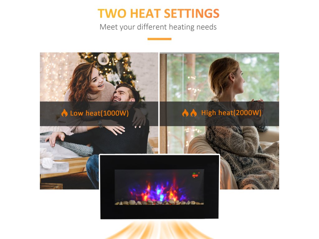 - Nastavitelný a výkonný: Přepíná mezi 1000W a 2000W, elektrický krb pokrývá plochu 20-25㎡ a zajišťuje, že v místnosti zůstane příjemné teplo ve dne i v noci