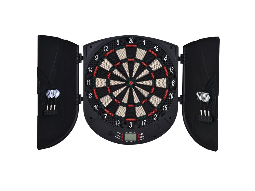 HOMCOM Elektronický šipkový terč s dvířky, zvukovými efekty a automatickým bodováním, 26 her, 185 možností zásahů, až pro 8 hráčů | Aosom.de
