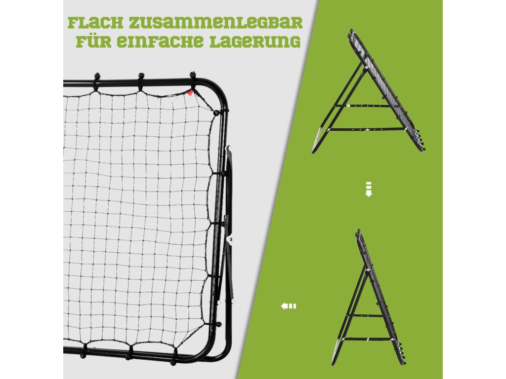 - Nastavitelný úhel: Úhel odrazové sítě lze pohodlně nastavit a snadno tak přizpůsobit trénink vašim individuálním potřebám. Obsahuje podlahové kotvy, které zabraňují převrácení během používání.
