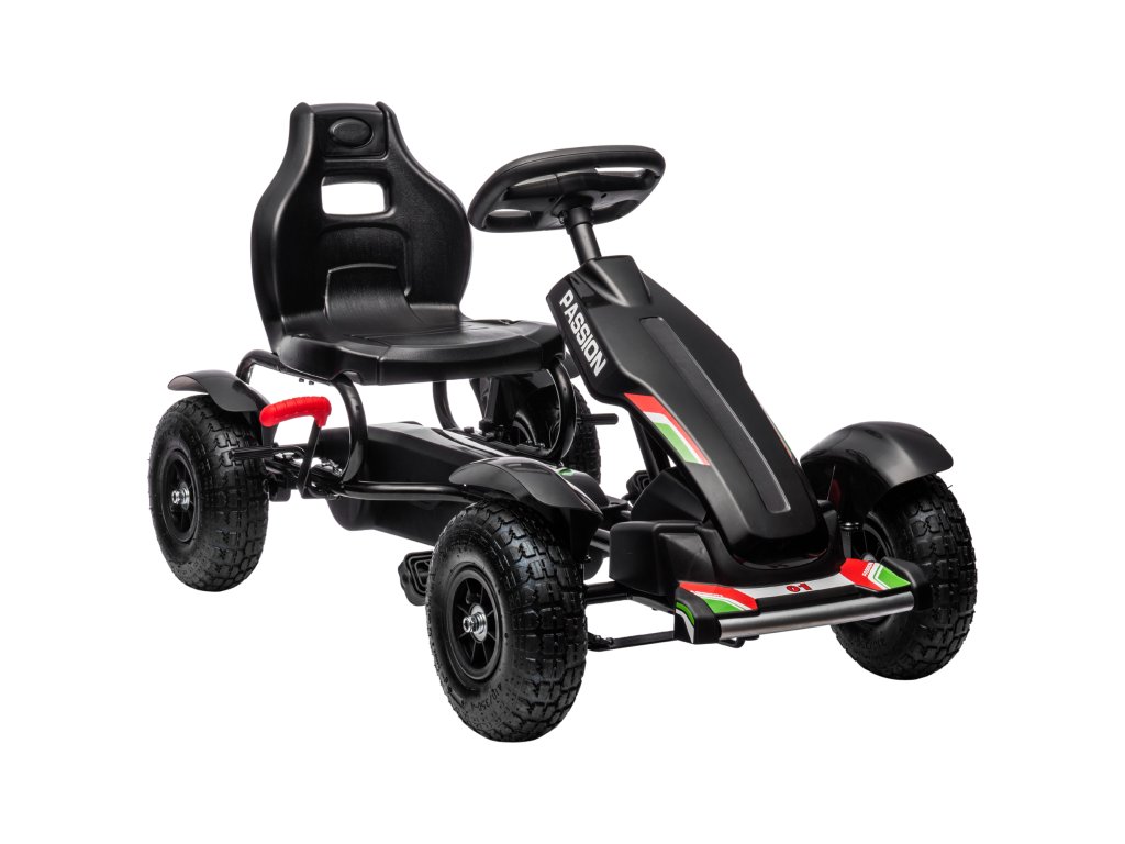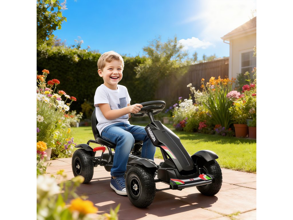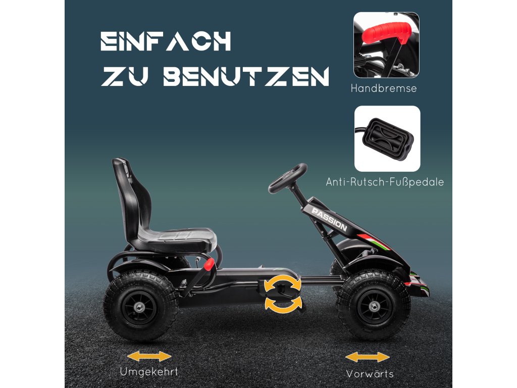 HOMCOM GoKart, šlapací auto, šlapací auto s ruční brzdou, dětské vozidlo s nastavitelným sedadlem, šlapací, kettcar pro 5-12 let, černá | Aosom
