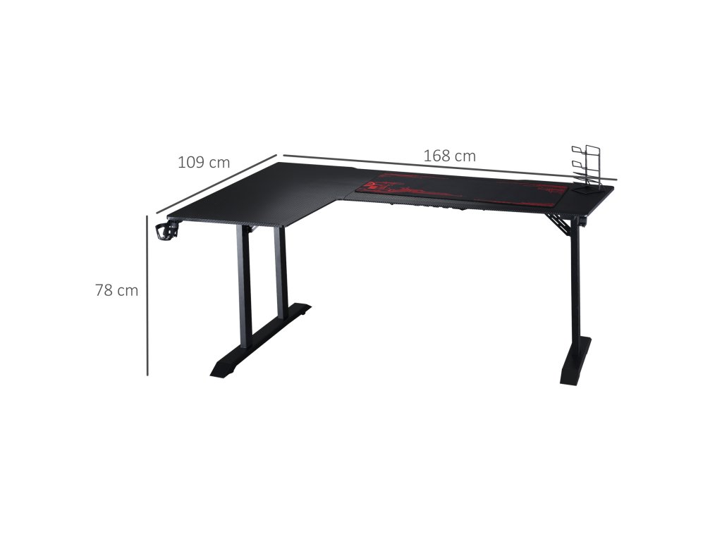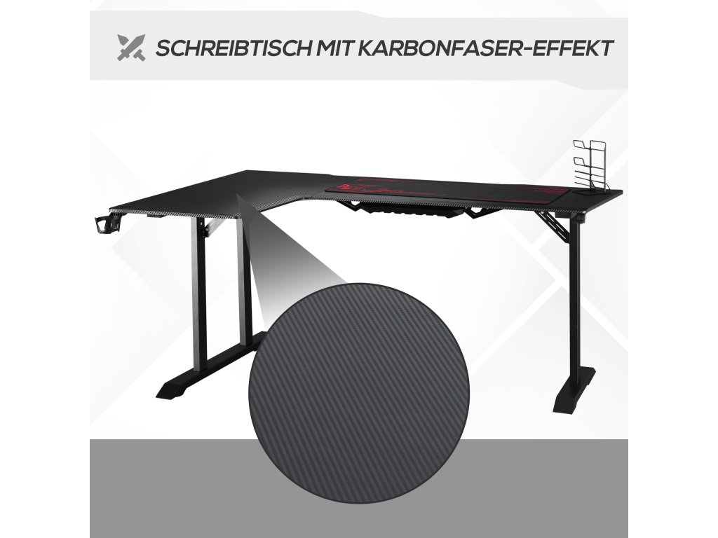 HOMCOM Herní stůl ve tvaru L s háčkem na sluchátka, držák na nápoje, MDF kov, černá+červená, 168x109x78cm| Aosom